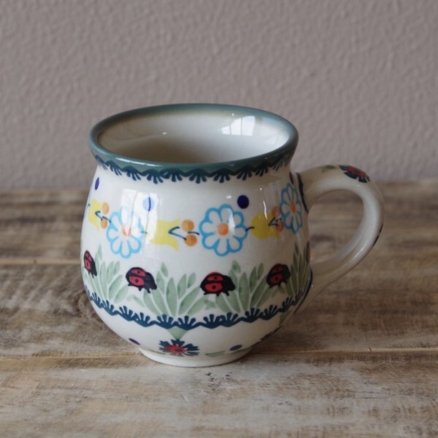 【再入荷】【新品】 ポーランド食器 ポーリッシュポタリー マグカップ 200ml てんとう虫 花柄 K67-IF45 コーヒーカップ ボレスワヴィエツ陶器 Boleslawiec レトロ