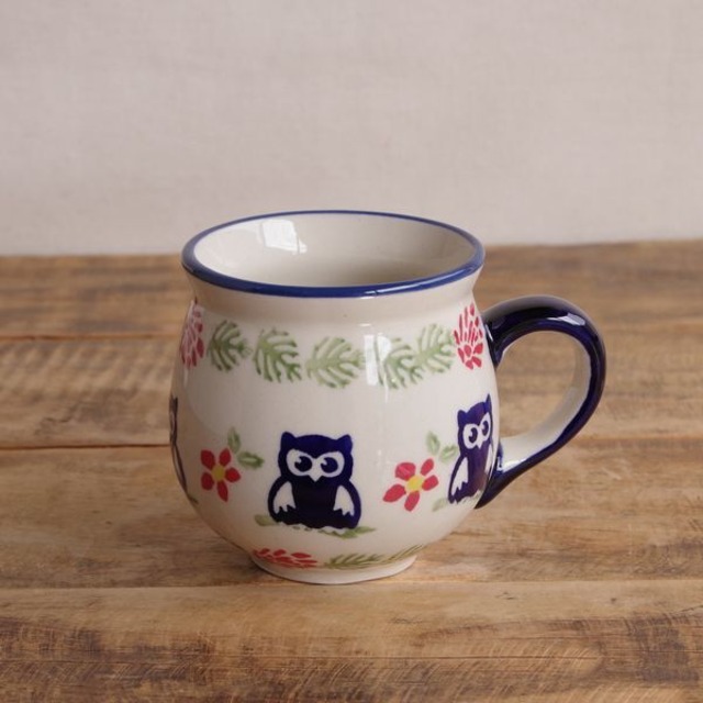 【再入荷】【新品】 ポーリッシュポタリー ポーランド 食器 マグカップ みみずく ふくろう 鳥 花柄 200ml K67-ALC68 ボレスワヴィエツ 陶器 Boleslawiec アニマル