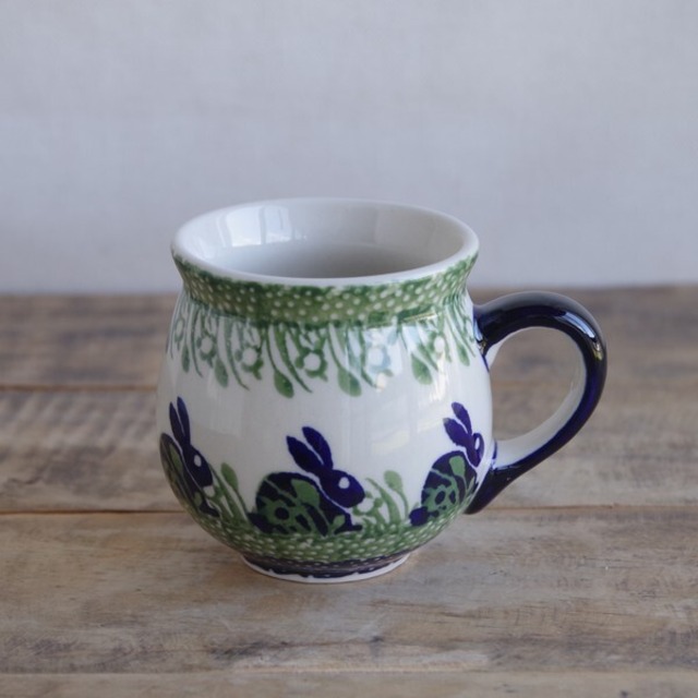 【再入荷】【新品】 ポーランド食器 ポーリッシュポタリー マグカップ 200ml 草むら うさぎ K67-P324 コーヒーカップ ボレスワヴィエツ陶器 Boleslawiec