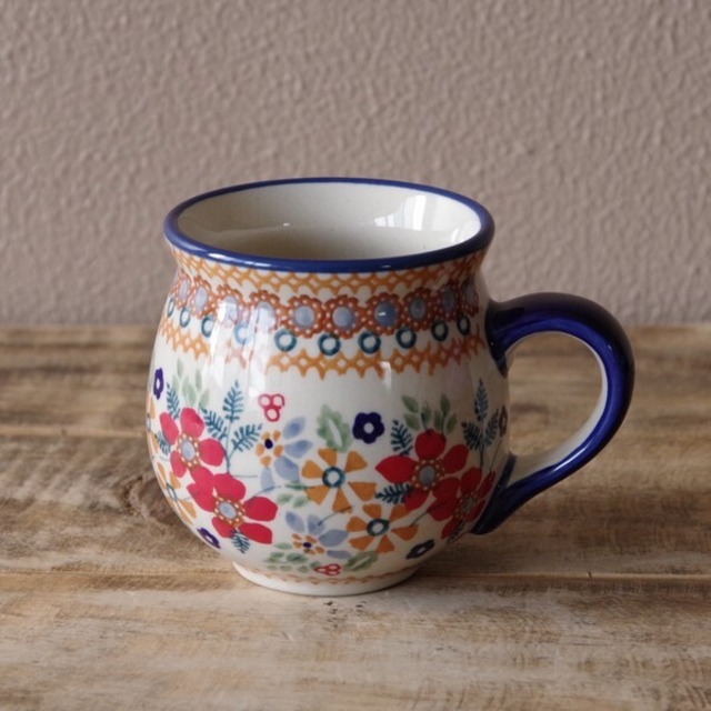 【再入荷】【新品】 ポーリッシュポタリー ポーランド 食器 マグカップ 北欧風 赤 黄色 ブルー カラフル 花柄 200ml K67-AS62 ボレスワヴィエツ 陶器