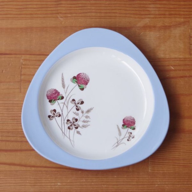スポード サマーデイズ 三角形 デザートプレート クローバー シロツメクサ 花柄 ボタニカル柄 水色 Spode Summer Days ヴィンテージ 食器 アンティーク 陶器 レトロ イギリス #240604-1~6