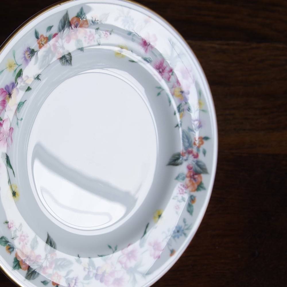 リムの部分に花やベリーなどのフルーツが描かれています。