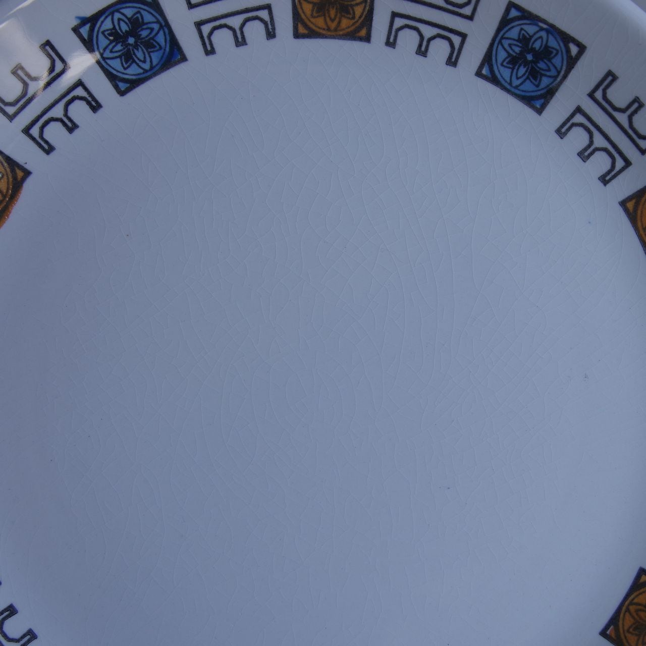 リム部分に花や王冠のような四角い模様が並び、花の部分はオレンジやブルーに塗られています。