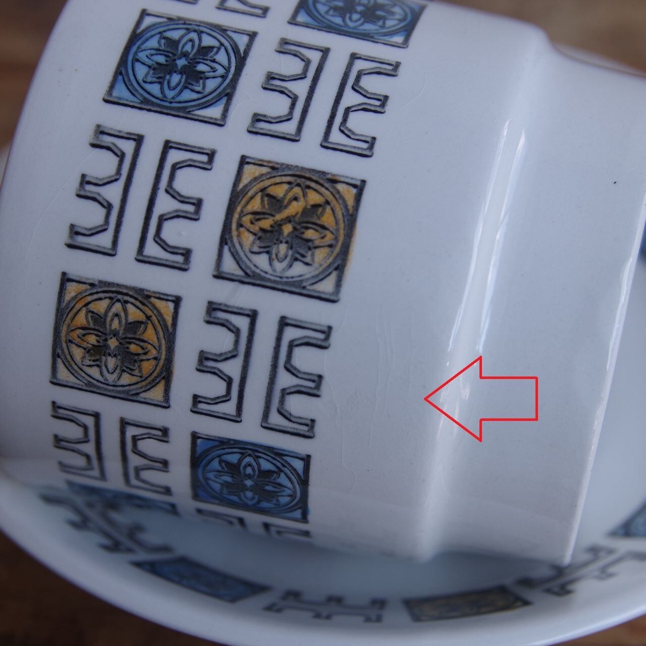 カップ、ソーサーともに、部分的に貫入があります。