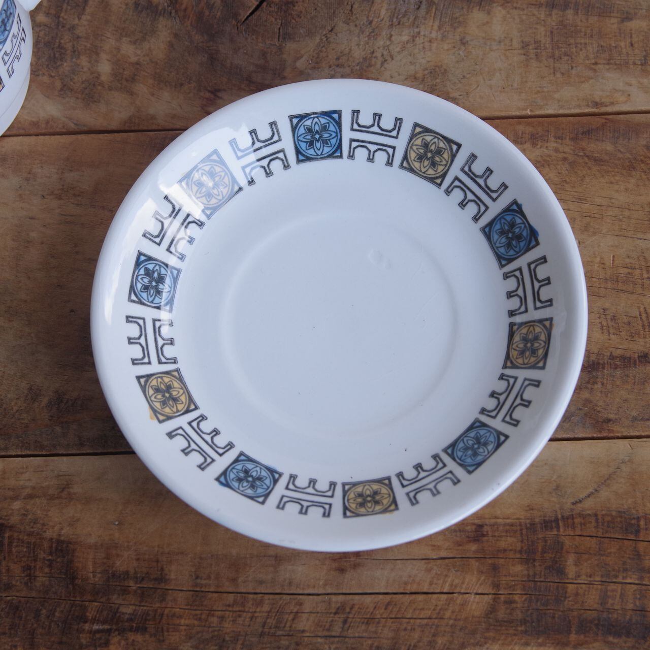 ソーサー中央付近に一か所、地の陶器の不整形があり、薄くへこんだ箇所があります。