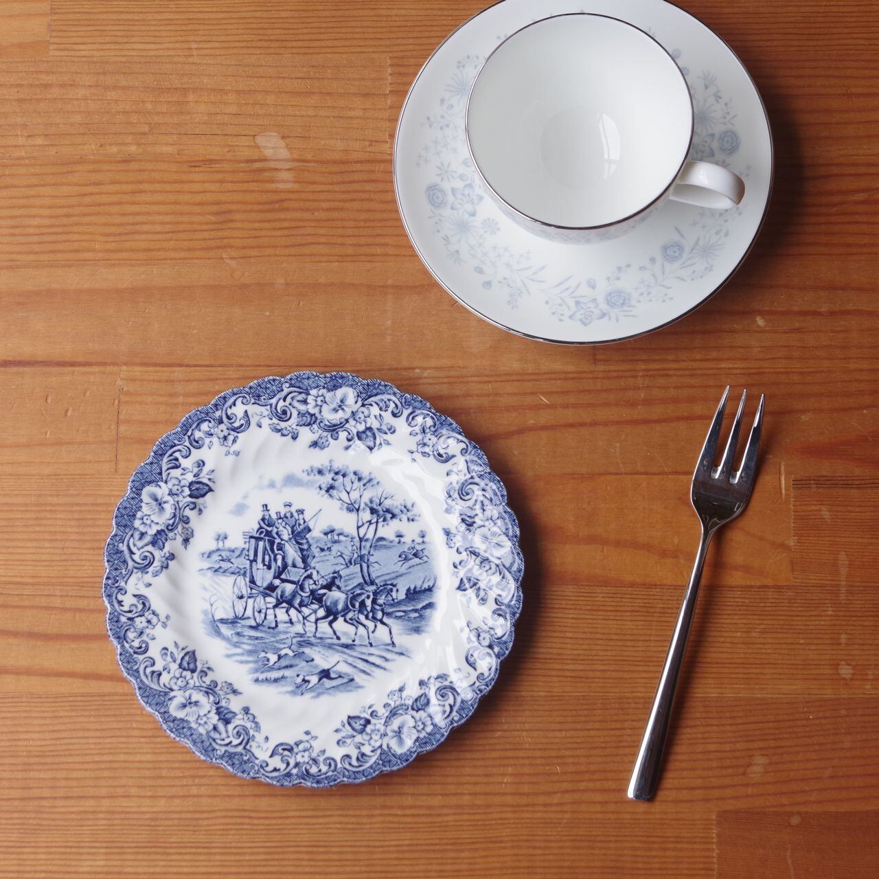 ジョンソンブラザーズ コーチングシーン 馬車 ブルー デザートプレート ケーキ皿 16cm レトロ ヴィンテージ 食器 #250312-3 Johnson Brothers Coaching Scenes Hunting Country お皿 パン皿 サイドプレート