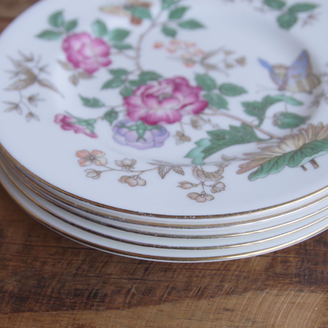 5枚セット Wedgwood ウェッジウッド Charnwood チャーンウッド ケーキ皿 デザートプレート 15cm #250313 ヴィンテージ 食器 陶磁器 お皿 小さめ オリエンタル 花柄 蝶 牡丹