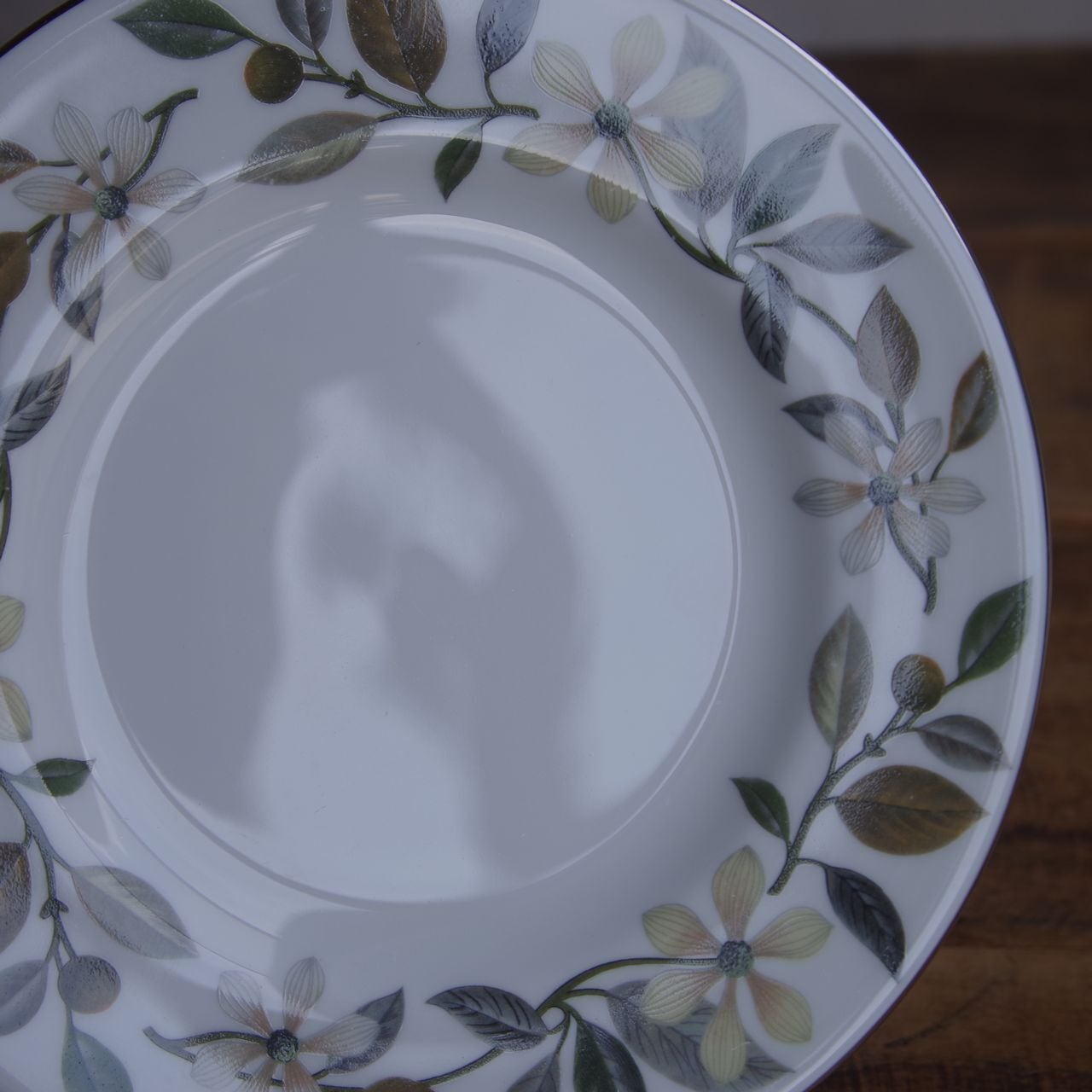 リムの部分に、ジャスミンのような花の絵柄が写実的に描かれた大人っぽいデザインです。