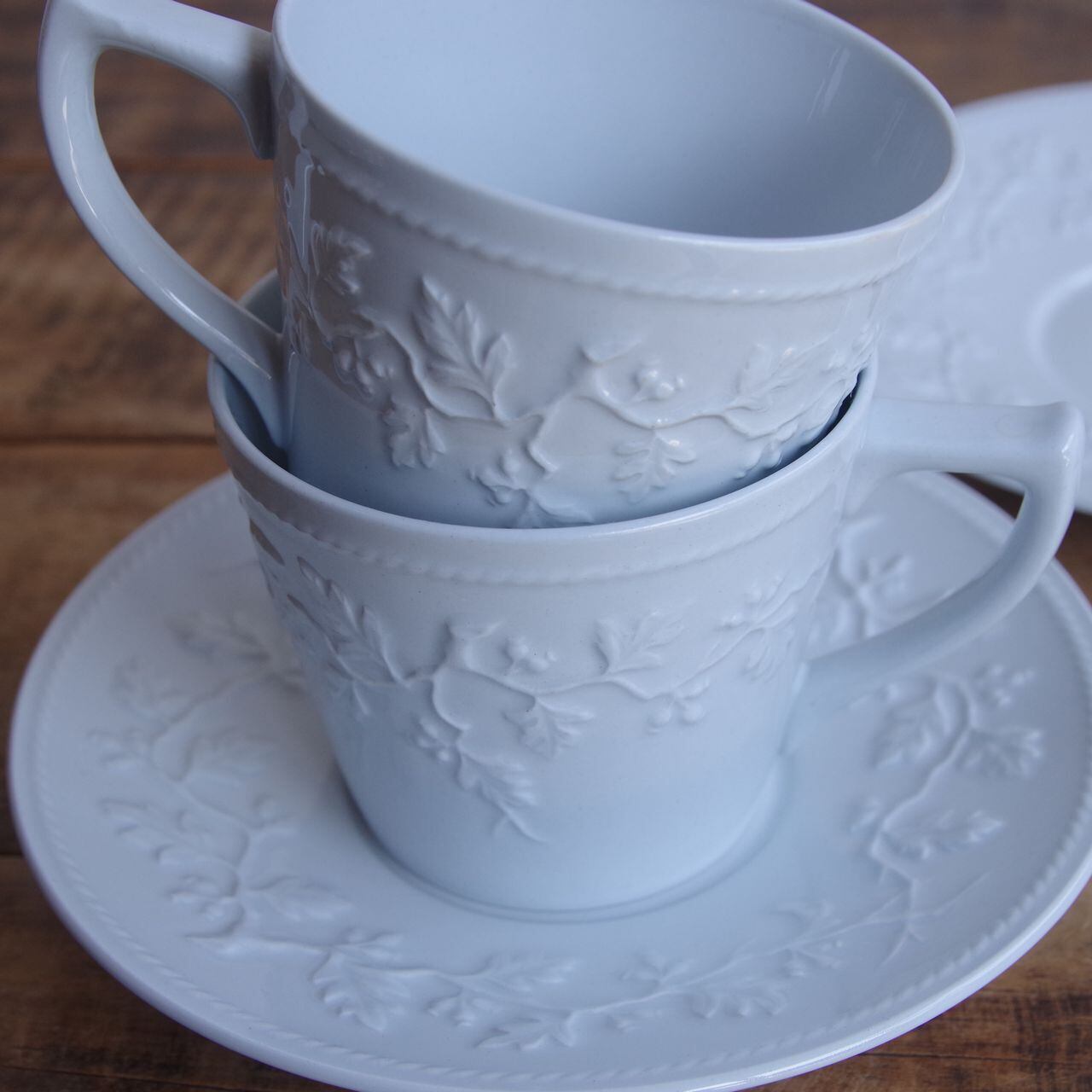 2客セット ペア スポード アレナイト コーヒーカップ ソーサー Spode Alenite グレー Oven ware #250314-5 イギリス ビンテージ アンティーク 食器 陶器 レリーフ おしゃれ ペアカップ カップ&ソーサー