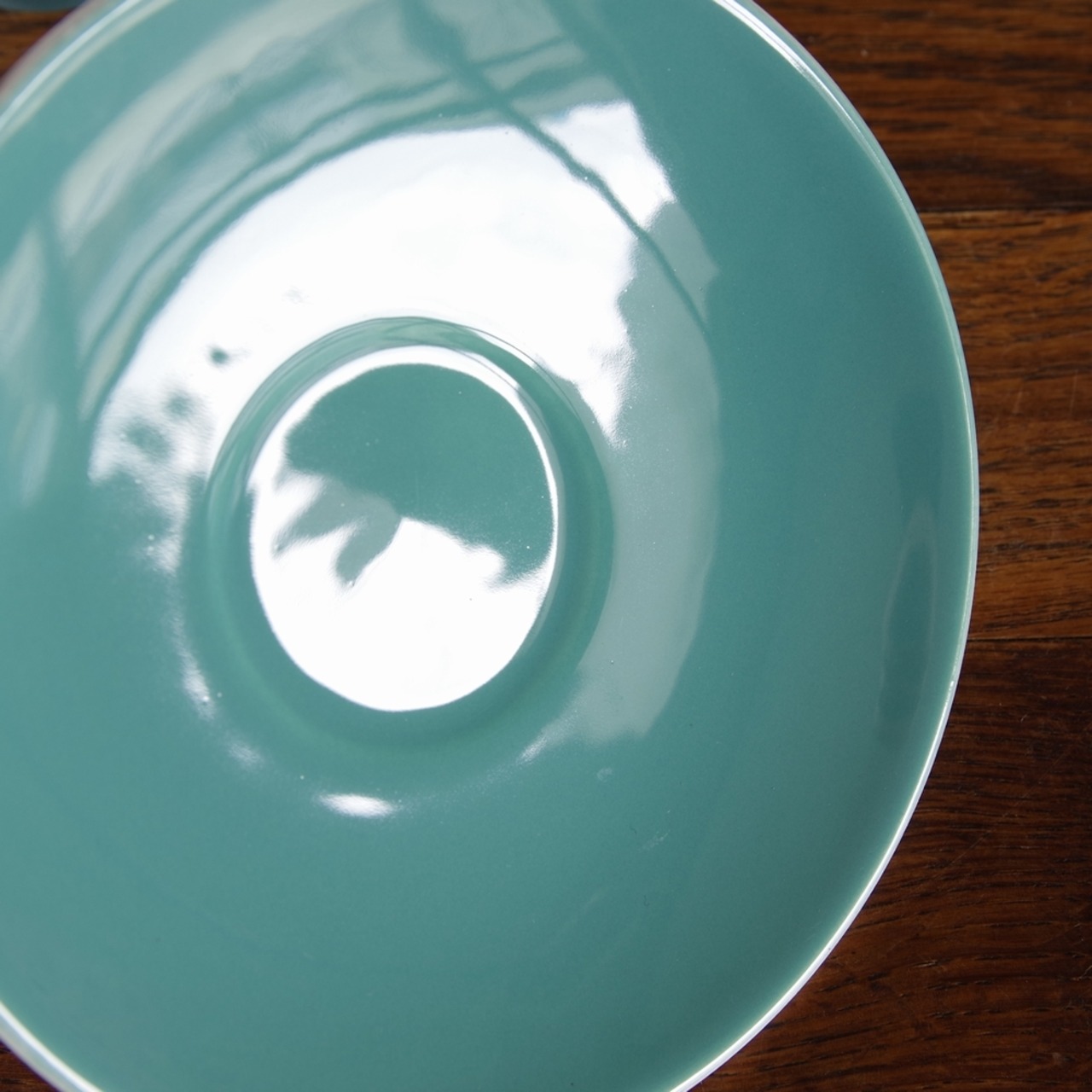 カップ外側の面やソーサー上面がグリーン色に塗られています。