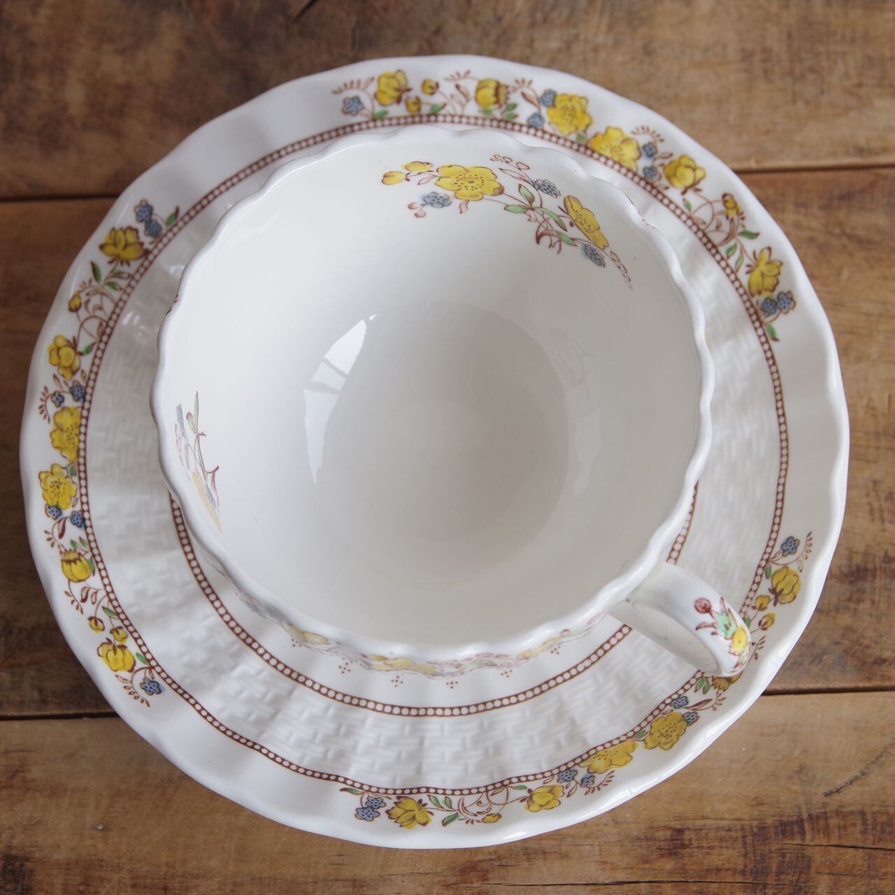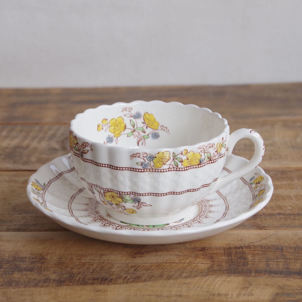 スポード バターカップ ティーカップ ソーサー Spode Buttercup きんぽうげ 花柄 #250321-3 ヴィンテージ食器 アンティーク 陶器 ウィッカー レリーフ Copeland カップ&ソーサー レトロ かわいい