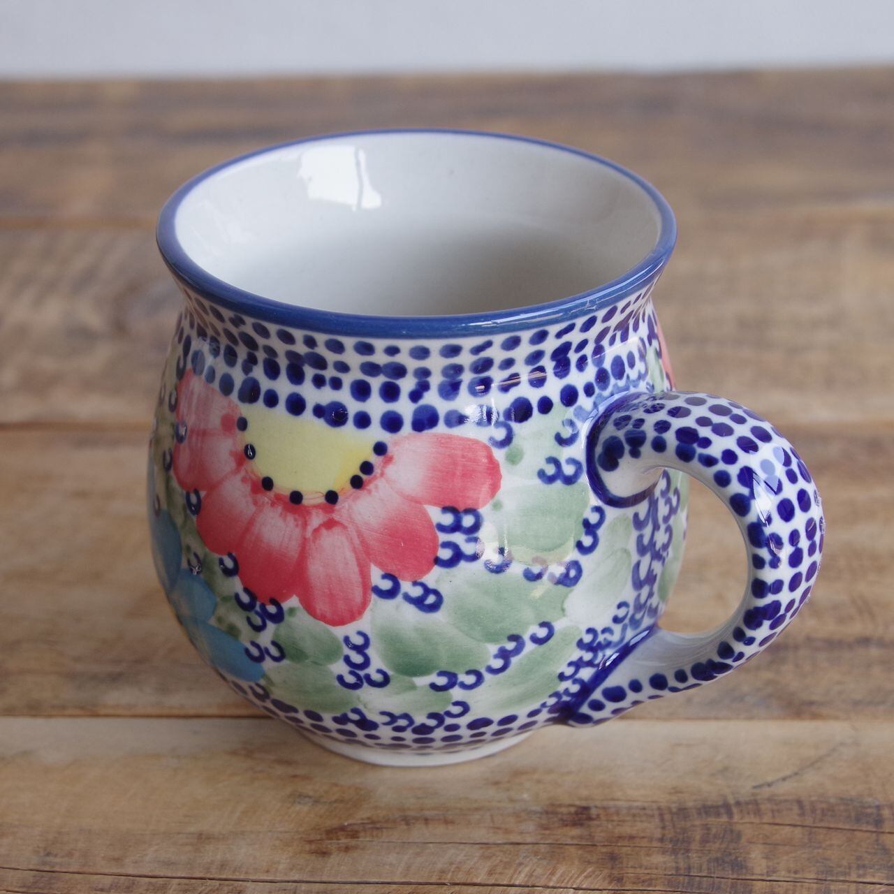 【新品】残りわずか 数量限定 特価品 花柄 2個セット ポーリッシュポタリー ポーランド 食器 マグカップ ブルーグレー 赤 青 大輪 花柄 200ml K67-AS42 K67-U10 ボレスワヴィエツ 陶器 Boleslawiec レトロ かわいい マーガレット