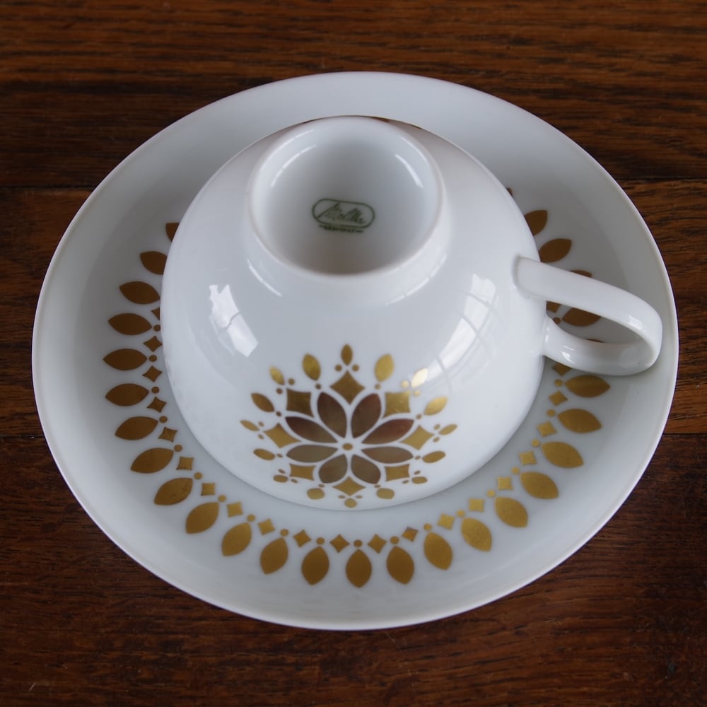 ドイツ製メリタ Melitta ゴールド カップ&ソーサー #180309-1~4 アンティーク レトロ 陶磁器 ヴィンテージ食器