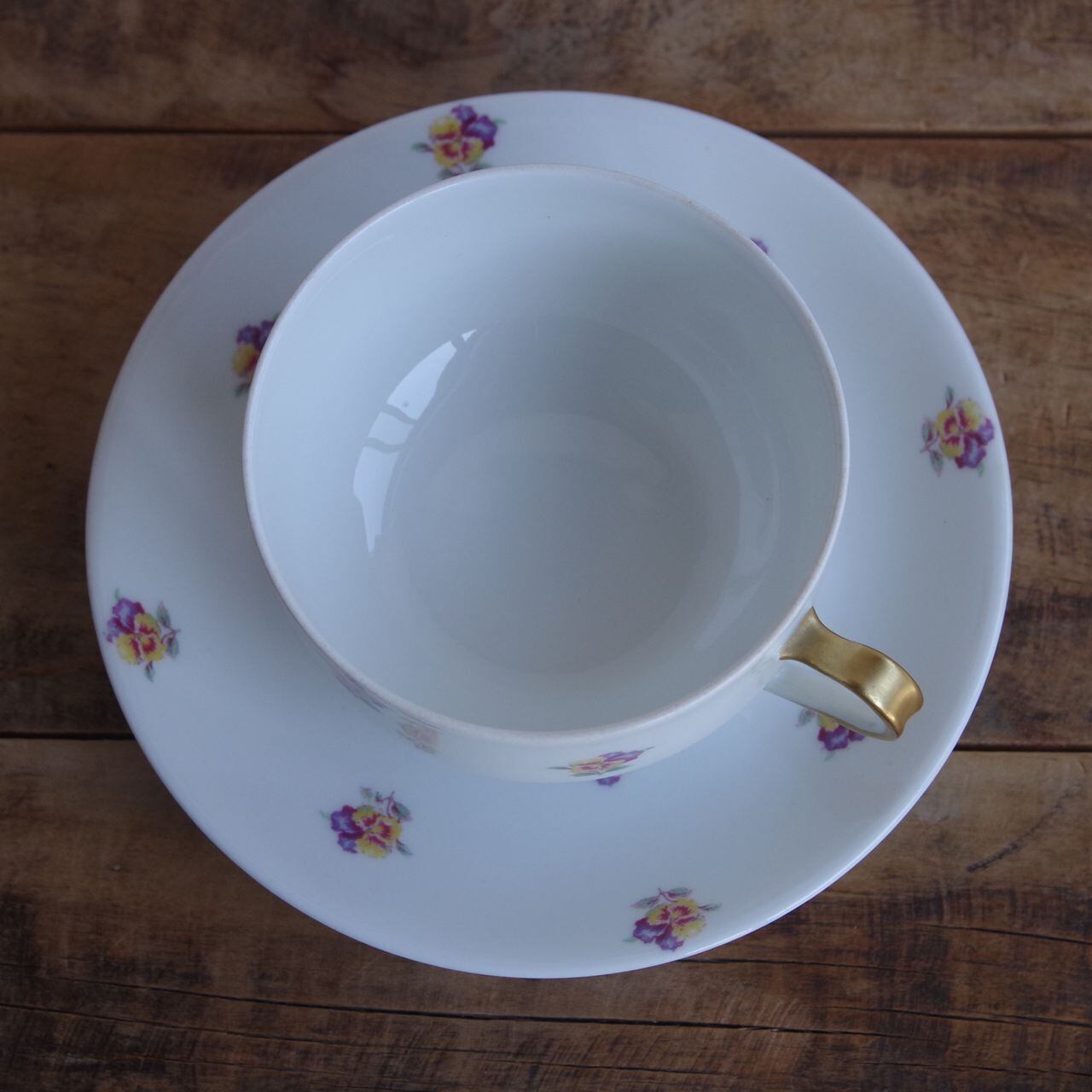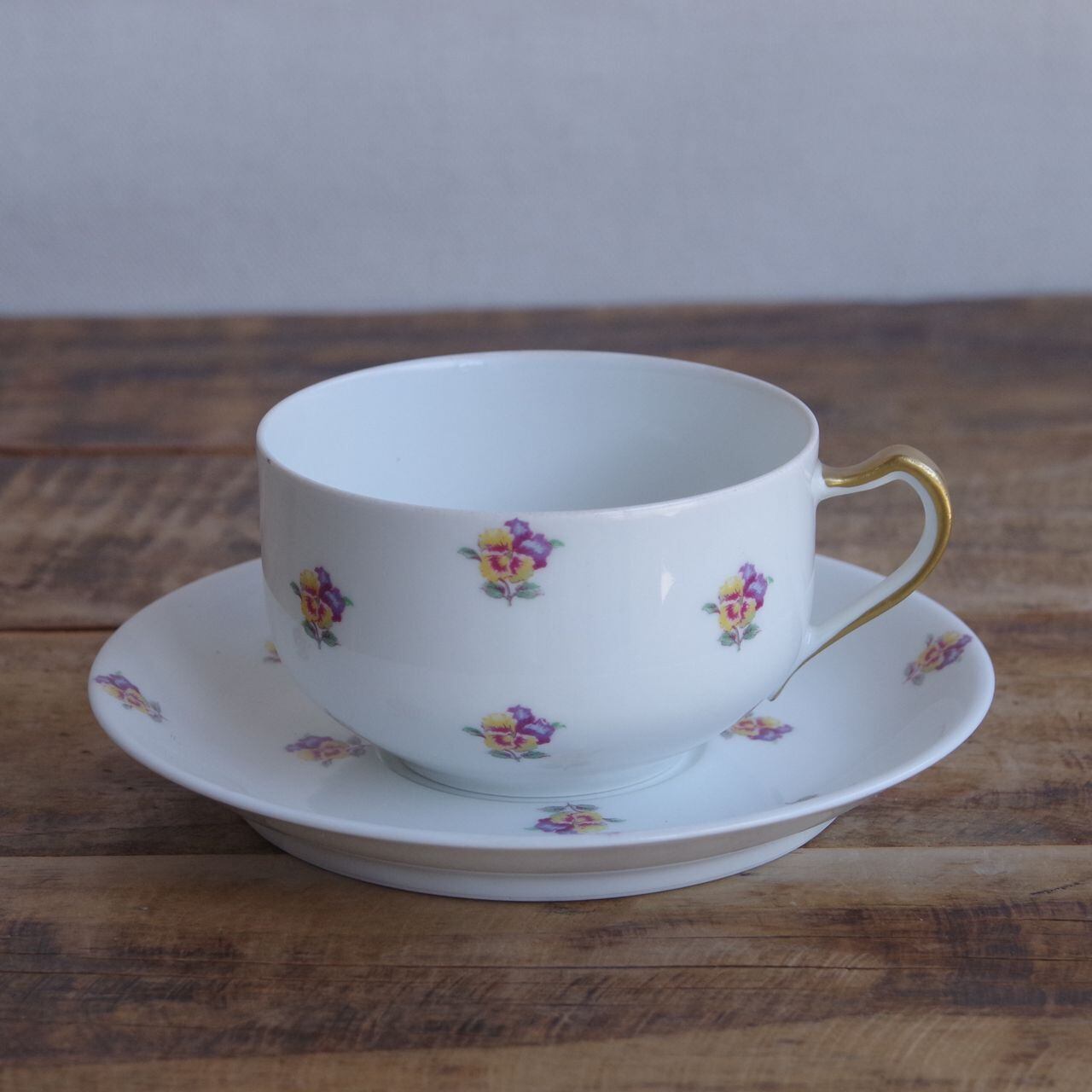 Haviland Limoges リモージュ アビランド パンジー 花柄 ティーカップ&ソーサー #250331-3 ゴールド 金彩 フランス アンティーク 食器 陶磁器 陶器 かわいい お花 コーヒーカップ