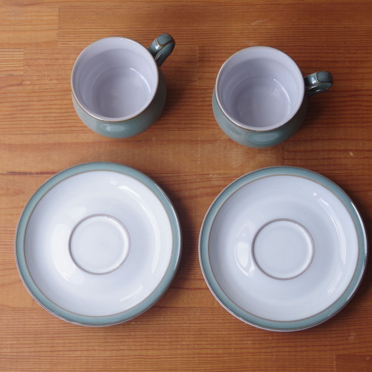 2客セット ペアカップ DENBY デンビー Regency Green リージェンシー グリーン コーヒーカップ ソーサー #250406-1 シンプル モダン イギリス製 緑色 無地 カップ&ソーサー ティーカップ