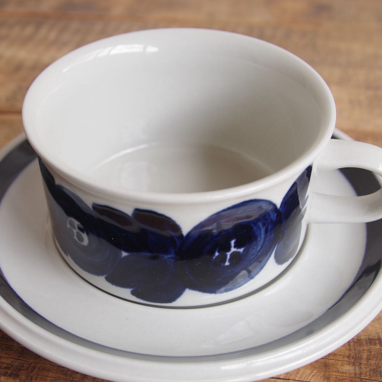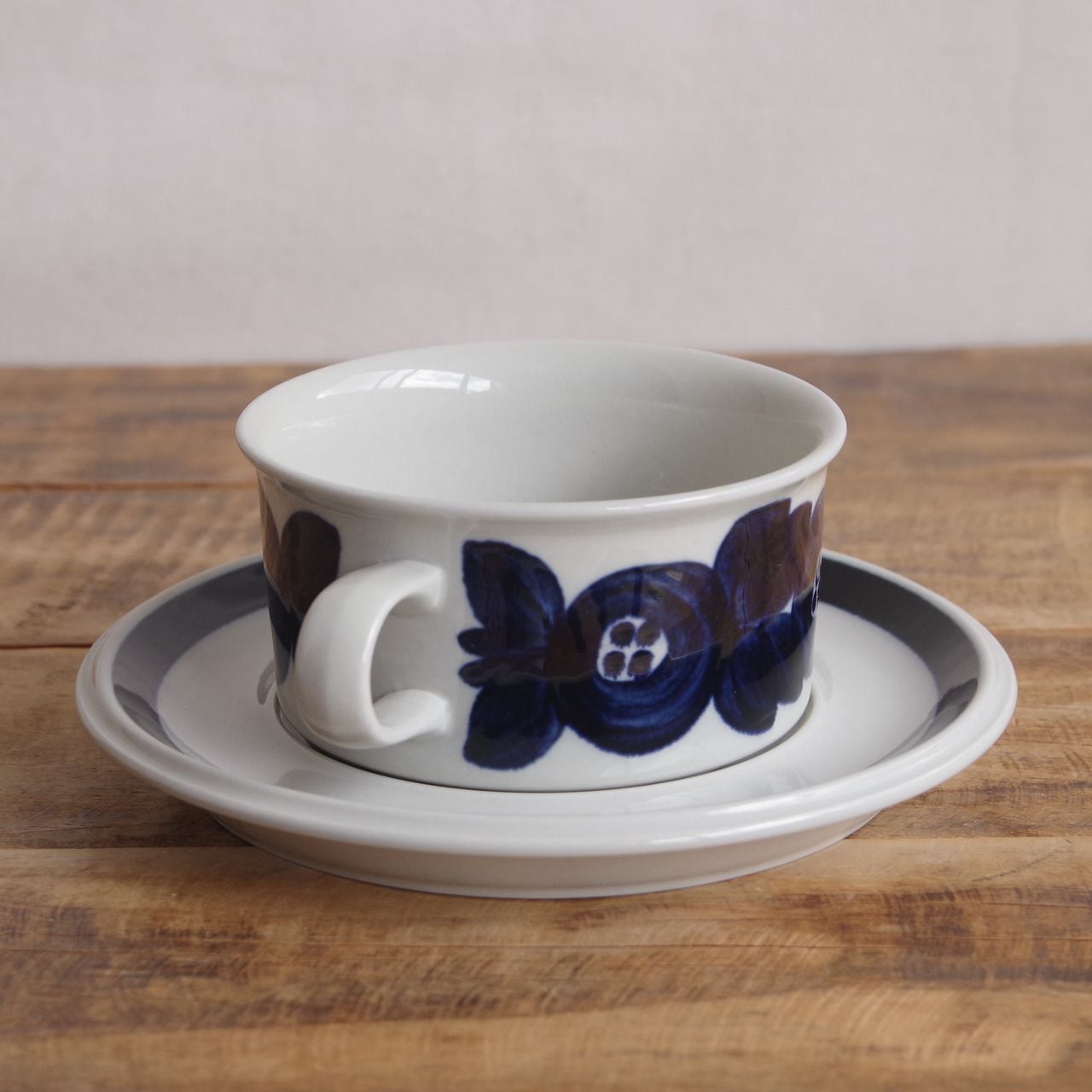 アラビア アネモネ ティーカップ ソーサー Arabia Anemone #250406-14 北欧 フィンランド ヴィンテージ 食器 陶器 雑貨 カップ&ソーサー ネイビー 花柄 手描き
