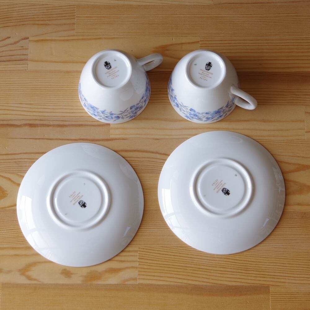 ウェッジウッド ペトラ 水色花柄 コーヒーカップ ソーサー #180317-1,2 イギリス製ヴィンテージ食器 Wedgwood Petra