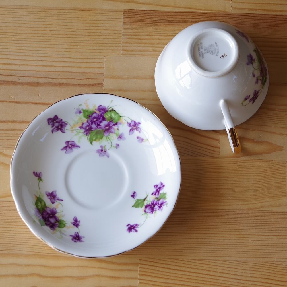イギリス製ヴィンテージ食器 Victroia すみれ花柄 ティーカップ ソーサー #180327-1 アンティーク レトロ ビクトリア Bone China