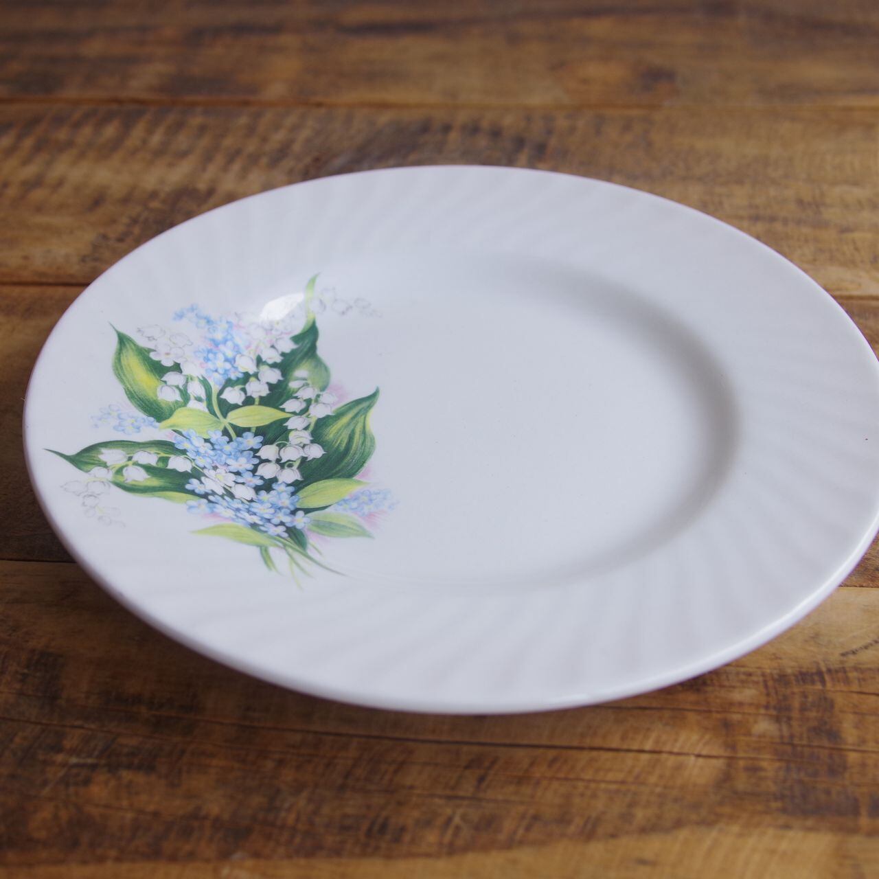 バラッツ Barratts すずらん 忘れな草 花柄 デザートプレート ケーキ皿 18cm #250503-12 イギリス ヴィンテージ 食器 陶器 レトロ テーブルウェア お皿