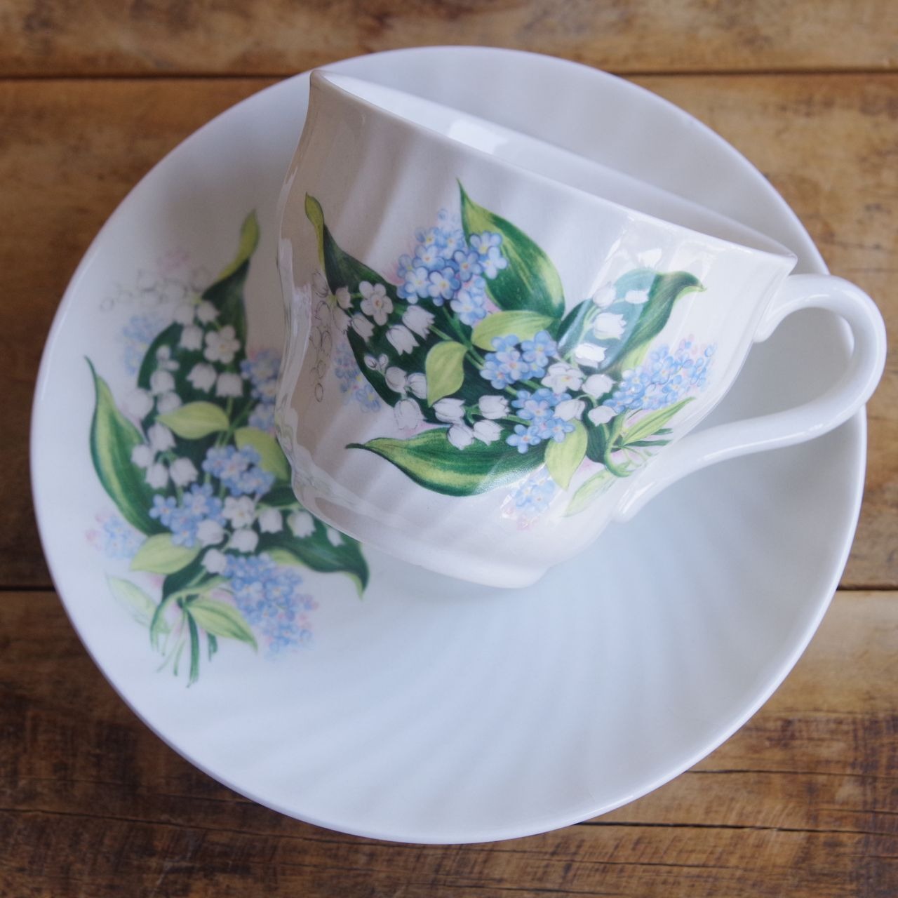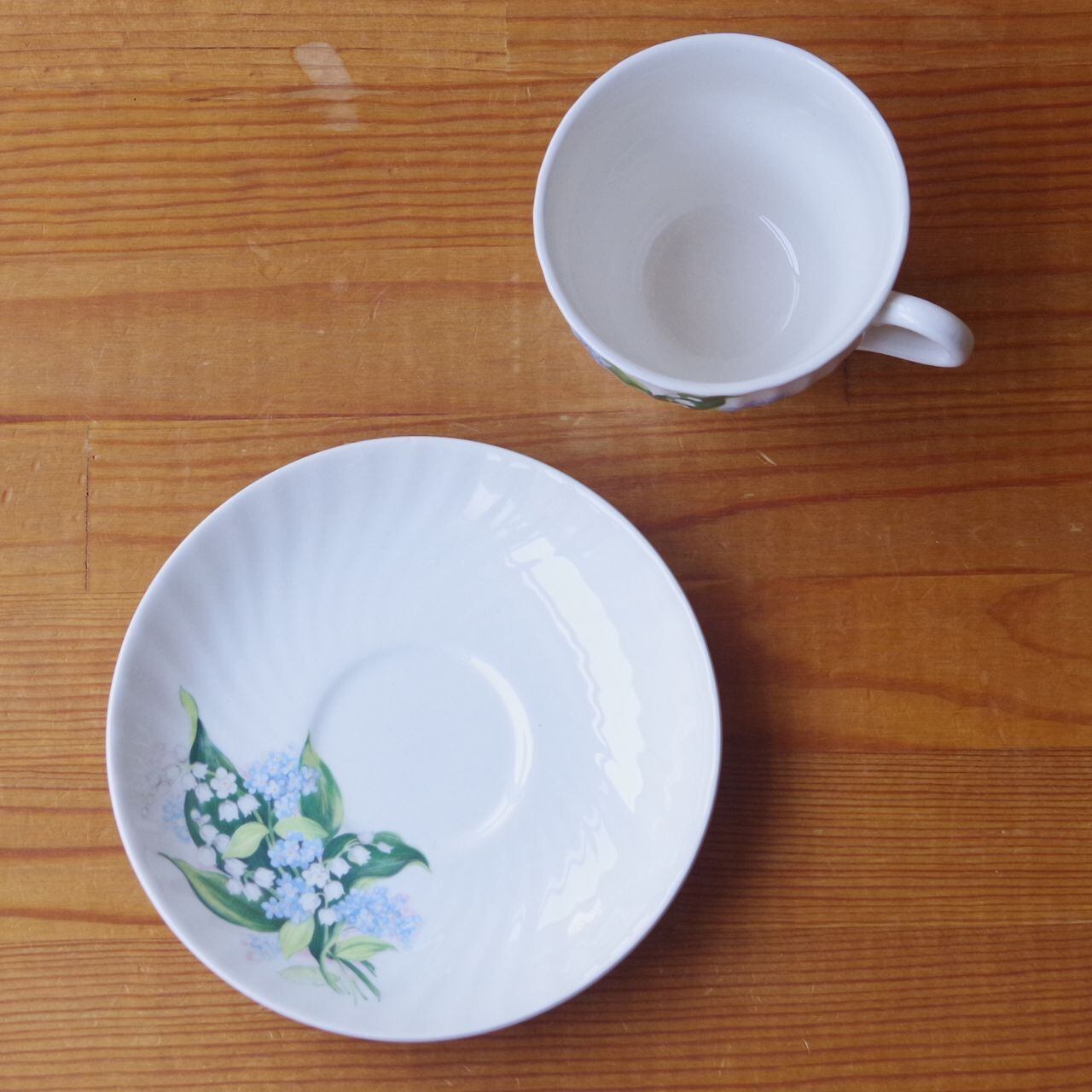 バラッツ Barratts すずらん 忘れな草 花柄 コーヒーカップ&ソーサー #250503-14 イギリス ヴィンテージ 食器 陶器 レトロ テーブルウェア ティーカップ