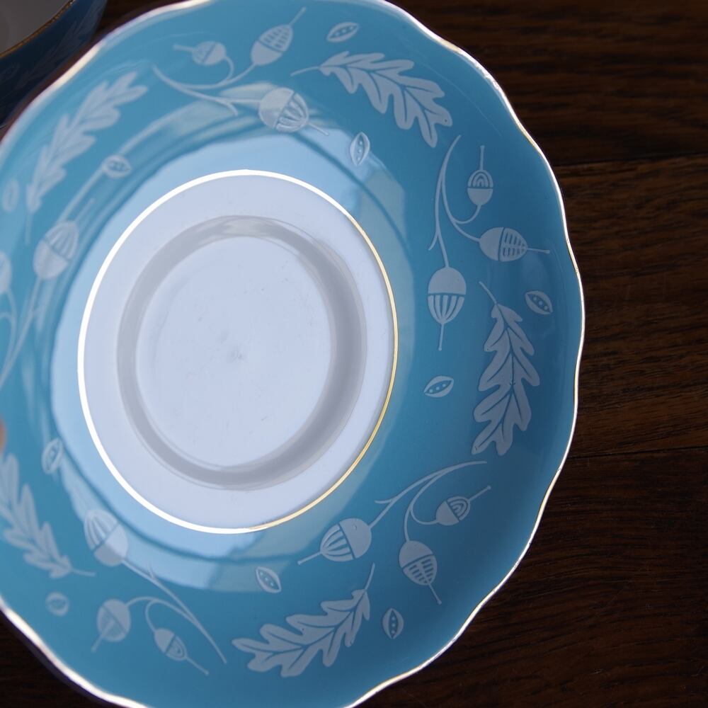 Colclough コルクラフ ターコイズブルー どんぐり柄コーヒーカップ ソーサー #180403-1,2 イギリス製 アンティーク ビンテージ 食器 陶磁器 レトロ