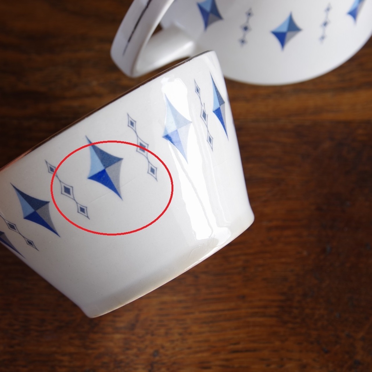ブルー系のダイヤのような絵柄が入っており、