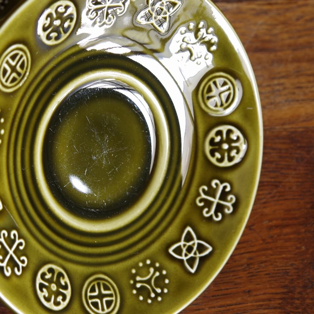 深緑の釉薬で絵柄を浮き上がっています。