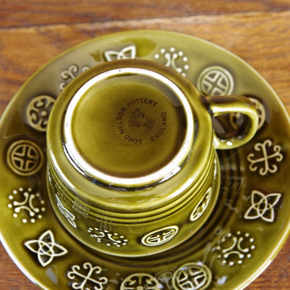 ロードネルソン セルティック Lord Nelson Celtic コーヒーカップ ソーサー #180412-1~3 イギリス製 ビンテージ食器 レトロ エンボス グリーン