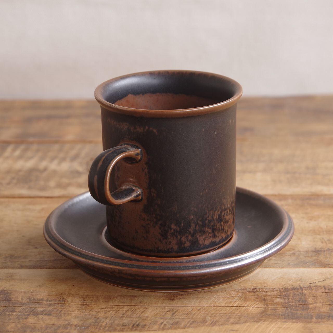 アラビア ルスカ コーヒーカップ&ソーサー 食器 陶器 ARABIA Ruska 北欧 ヴィンテージ ブラウン レトロモダン #250526-10 アンティーク シンプル おしゃれ 人気 CS デュオ