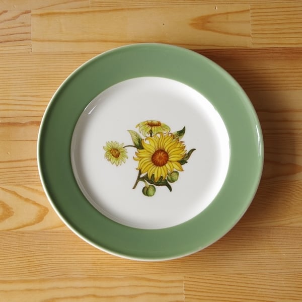 アンティーク食器 ウェッジウッド サンフラワー デザートプレート ケーキ皿 20cm #180417-1,2 イギリス製ビンテージ Wedgwood Sunflower ひまわり 花柄