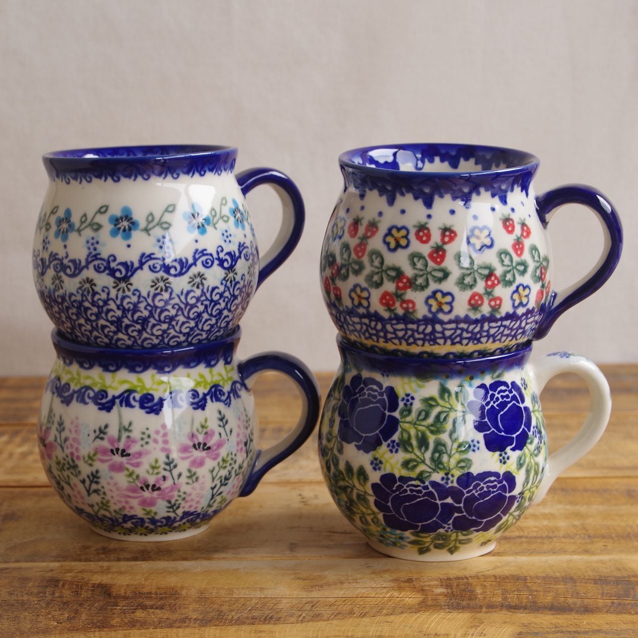 【新品】 ポーランド食器 ポーリッシュポタリー マグカップ 300ml ターコイズブルー 花柄 v383-c114 コーヒーカップ ボレスワヴィエツ陶器 Boleslawiec かわいい バブルマグ M 東欧雑貨