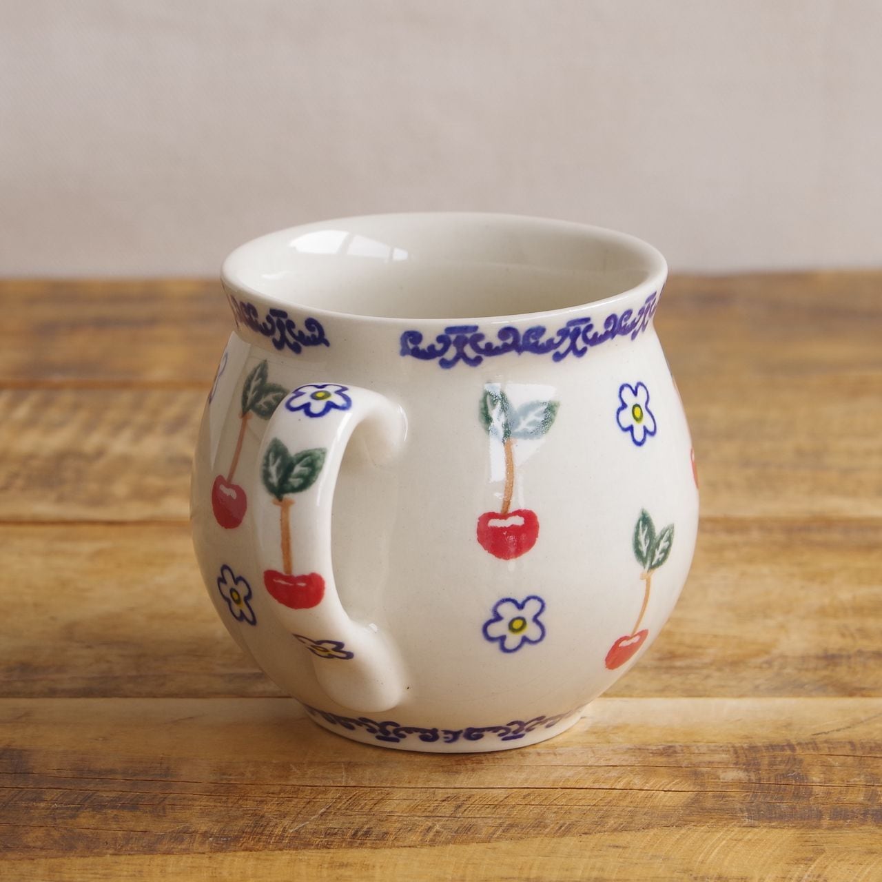 【新品】 ポーランド食器 ポーリッシュポタリー マグカップ さくらんぼ チェリー柄 白い花柄 300ml v383-c135 コーヒーカップ ボレスワヴィエツ陶器 Boleslawiec かわいい バブルマグ M 東欧雑貨 レトロポップ フルーツ柄