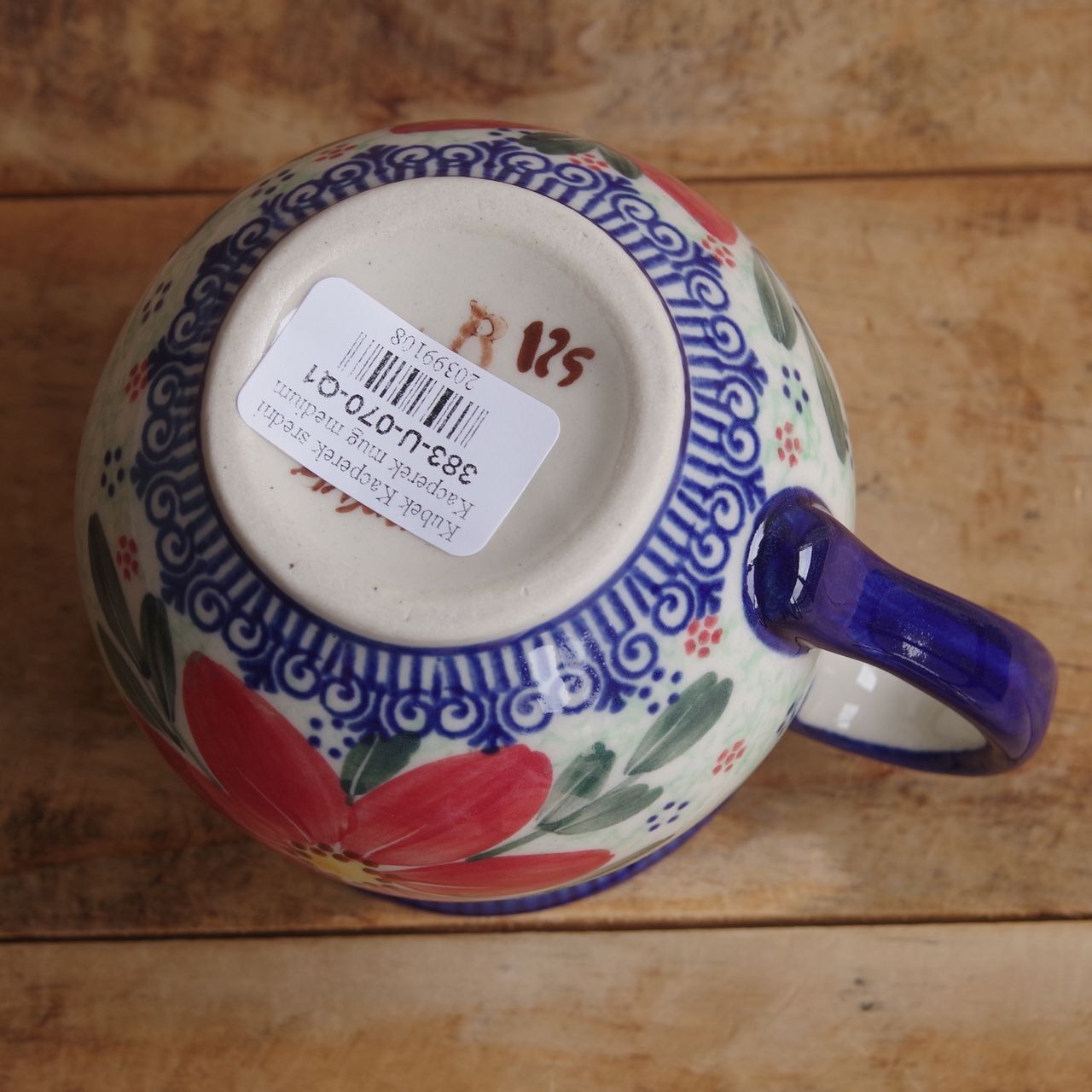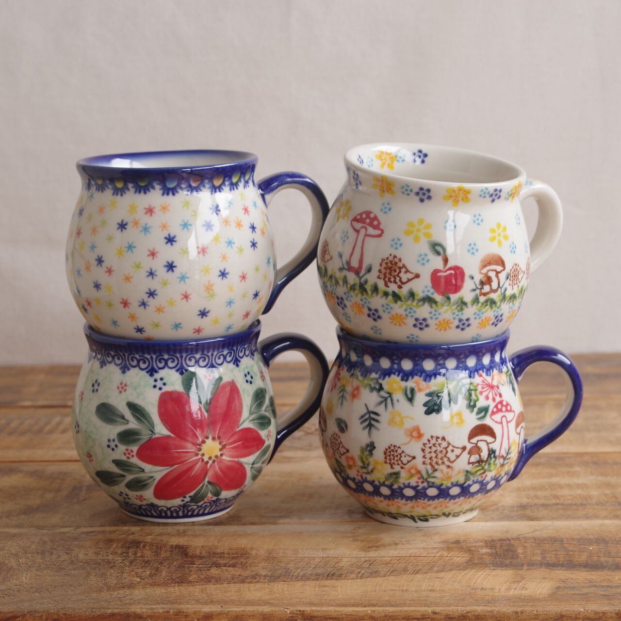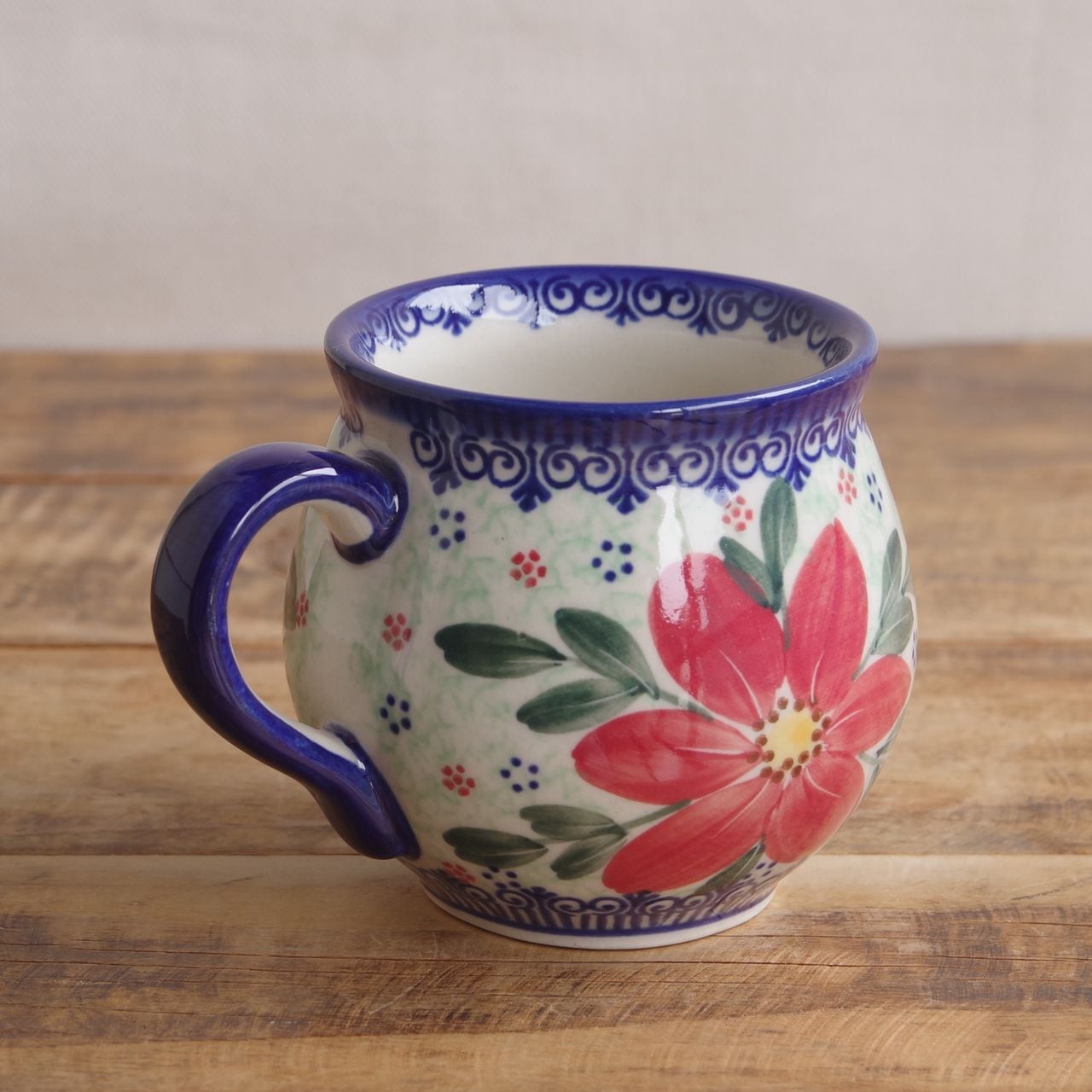 【新品】 ポーランド食器 ポーリッシュポタリー マグカップ 赤い花柄 大輪 300ml v383-u70 コーヒーカップ ボレスワヴィエツ陶器 Boleslawiec かわいい バブルマグ M 東欧雑貨 おしゃれ