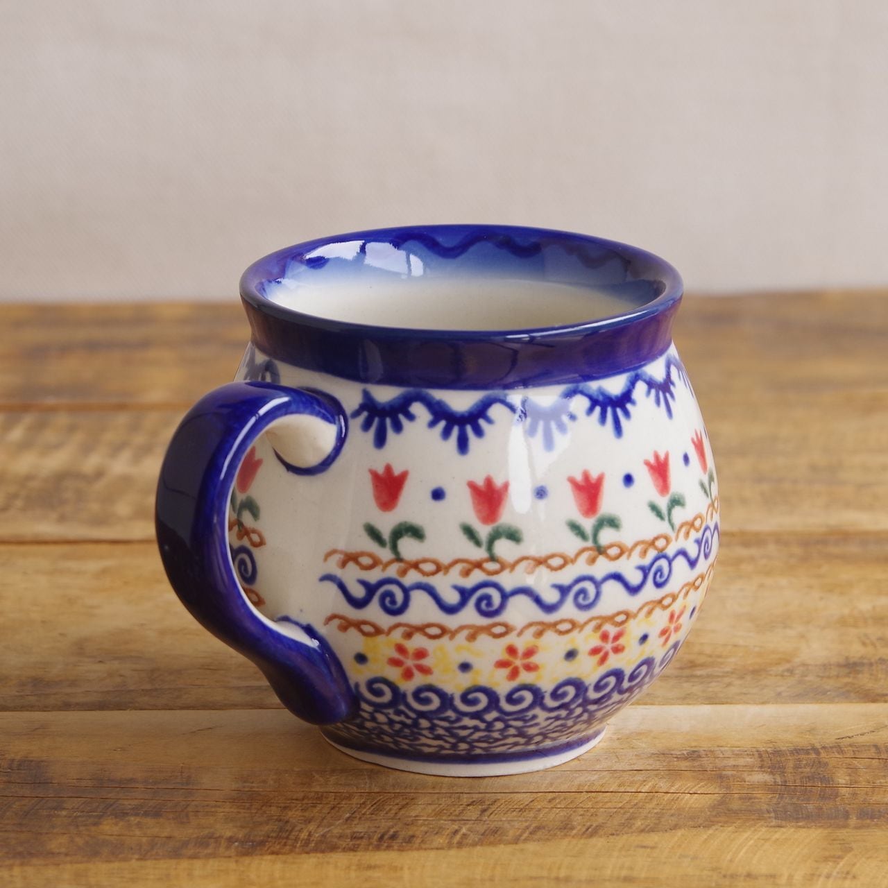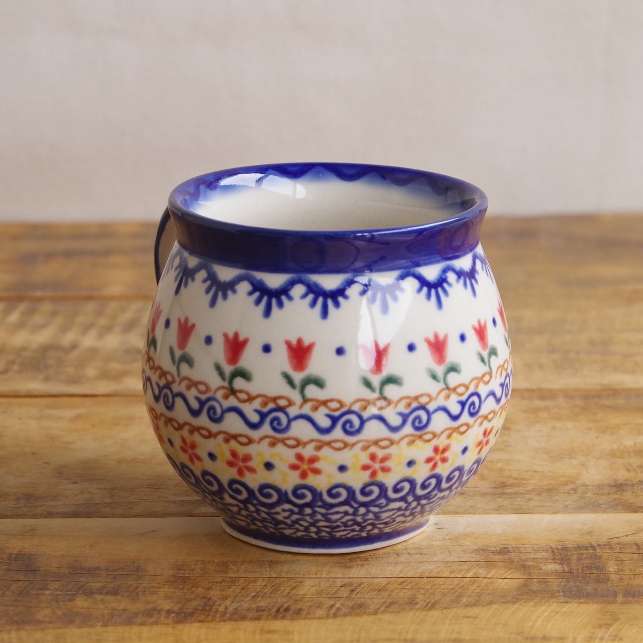 【新品】 ポーランド食器 ポーリッシュポタリー マグカップ 赤 チューリップ 花柄 300ml v383-u94 コーヒーカップ ボレスワヴィエツ陶器 Boleslawiec かわいい バブルマグ M 東欧雑貨 レトロ