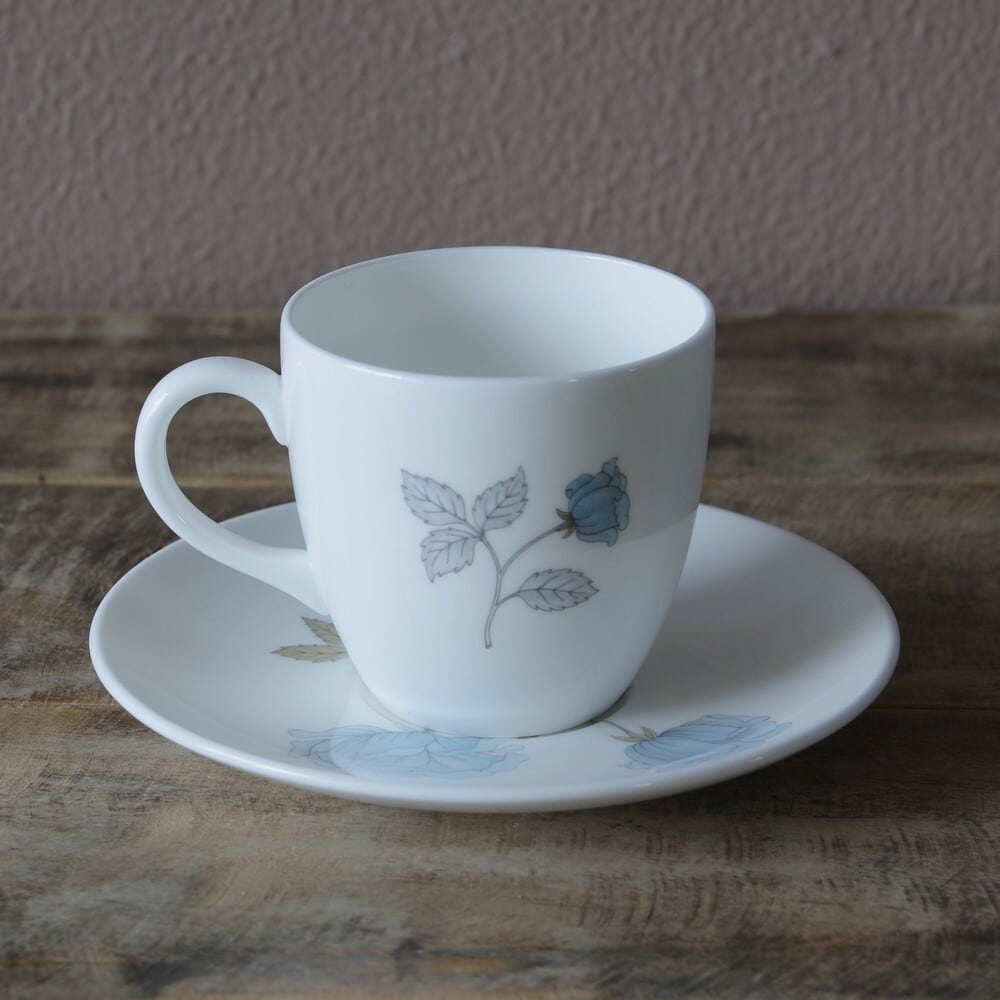 ウェッジウッド アイスローズ ブルーのバラの花柄 デミタスカップ ソーサー #190824-1 ヴィンテージ食器 アンティーク Ice Rose レトロ Wedgwood