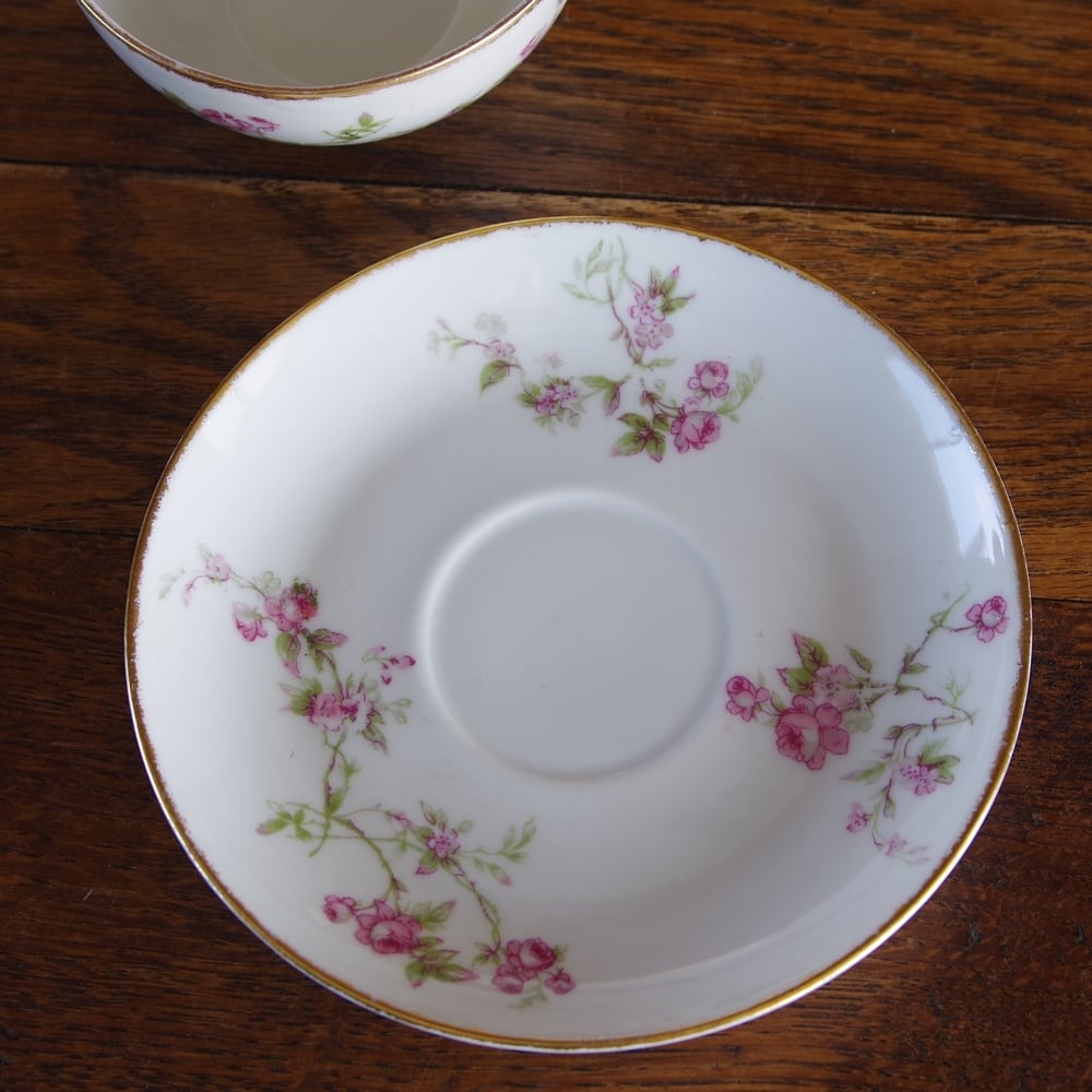 フランス製アンティーク食器 Limoges PL リモージュ 薔薇 花柄 ティーカップ ソーサー #180426-1 La porcelaine limousine 陶器 レトロ 金彩