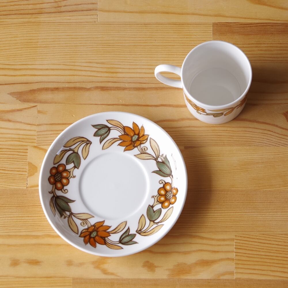 ビンテージ食器 スージークーパー アールヌーボー ブラウン コーヒーカップ ソーサー #180426-1 ヴィンテージ Susie Cooper Art Nouveau レトロ花柄