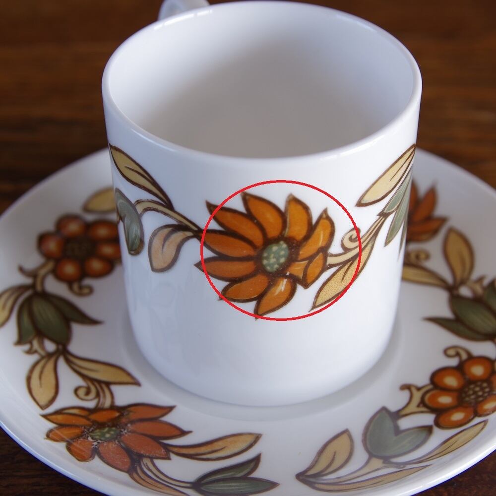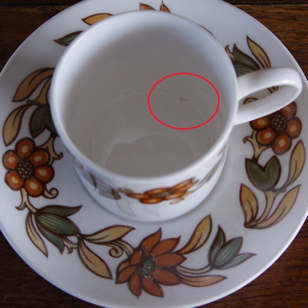 カップ内側の底面に一か所、茶色っぽい焦げたような箇所があります。
