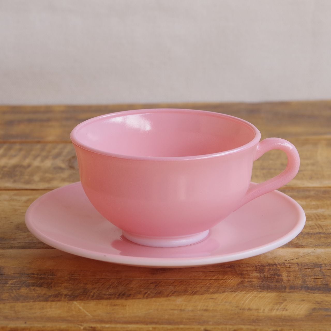 Hazel Atlas ヘーゼルアトラス Ovide Platonite ピンク ガラス カップ&ソーサー #250618-11 アメリカ製 ヴィンテージ アンティーク レトロ コーヒーカップ ティーカップ