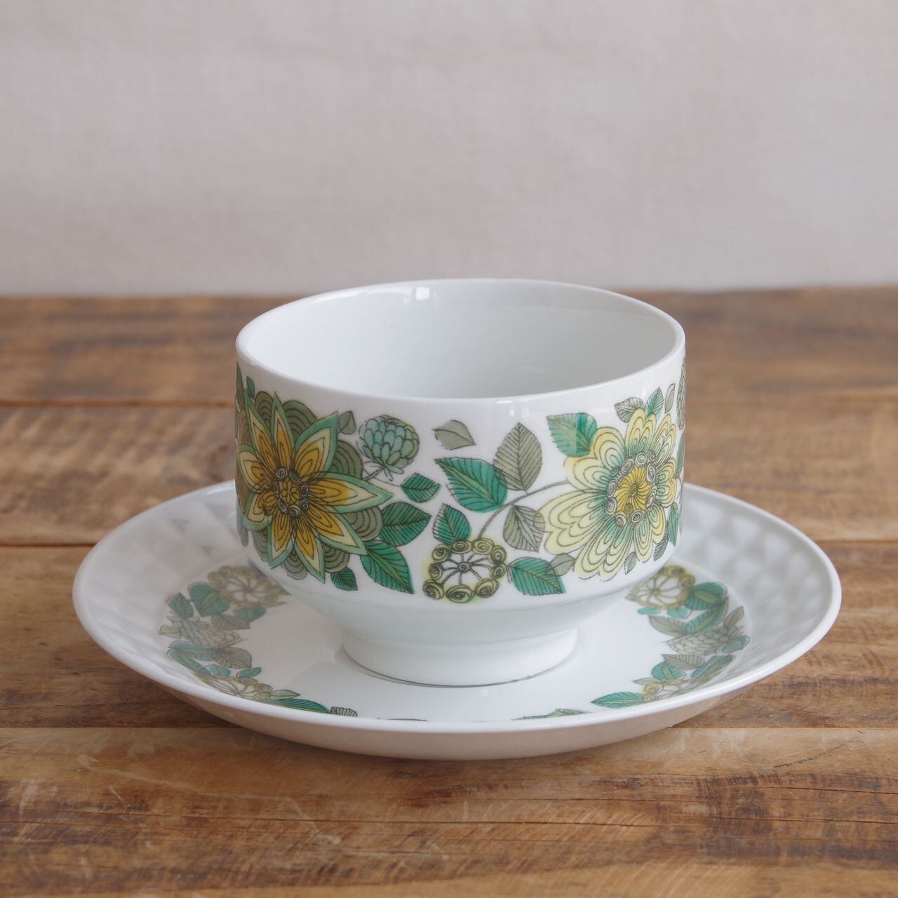 スペイン製 PONTESA ポンテサ グリーン 花柄 ティーカップ&ソーサー #250703-2 ボタニカル レトロ 陶器 ヴィンテージ食器 シロツメクサ コーヒーカップ The Castillian Collection Sevilla セビリア