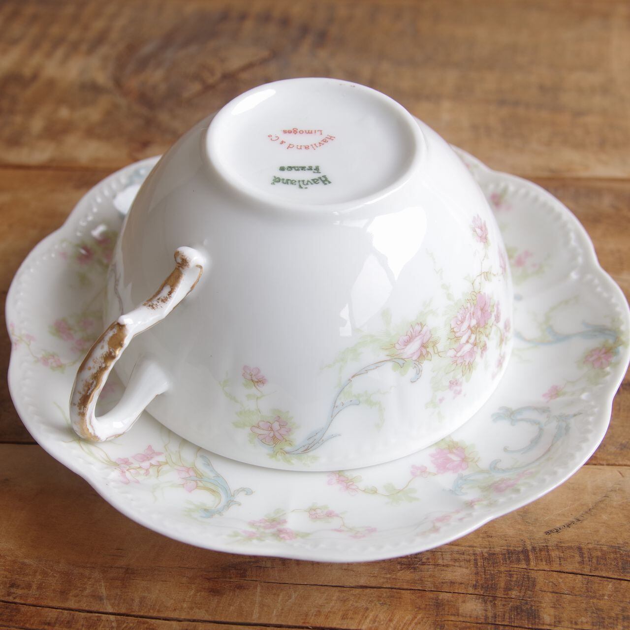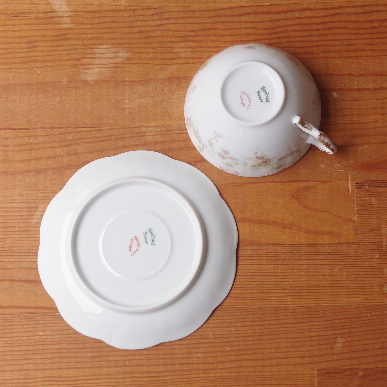 リモージュ アビランド プリンセス ピンク 花柄 リボン ティーカップ ソーサー #250707-4 フランス アンティーク 食器 Haviland & Co. Limoges Princess カップ&ソーサー デュオ