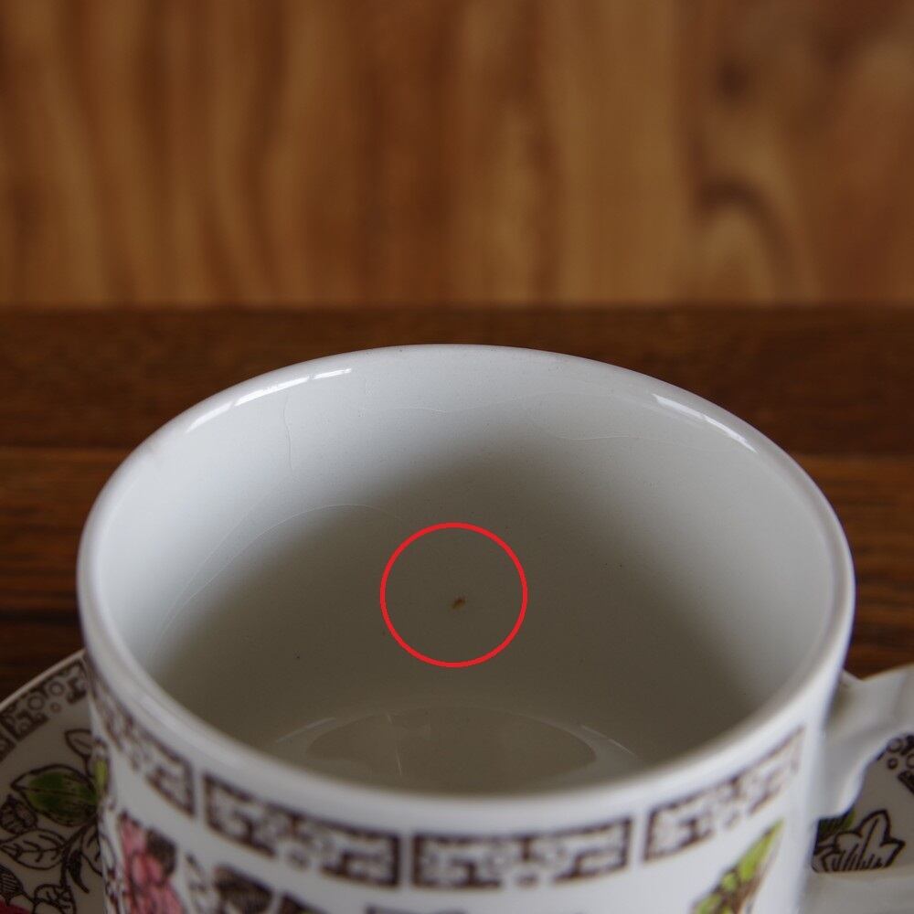 また、カップの内側に一か所、茶色っぽいへこみのようなものがあります。