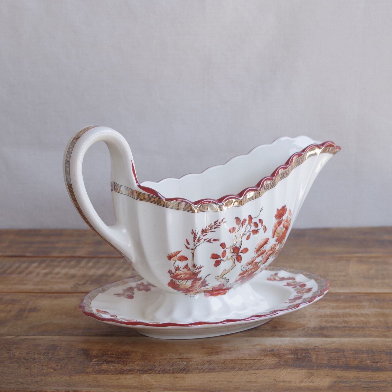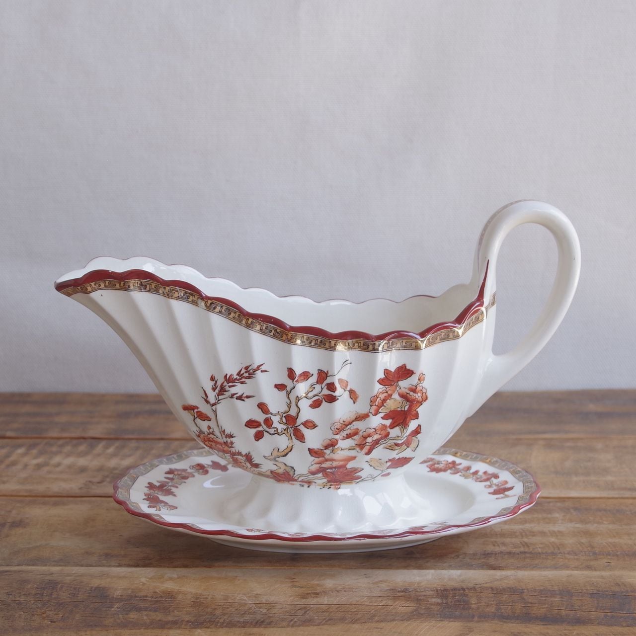 スポード インディアツリー ソースピッチャー Spode India Tree えんじ オレンジ #250716 イギリス ビンテージ アンティーク 食器 陶器 オリエンタル ソース入れ