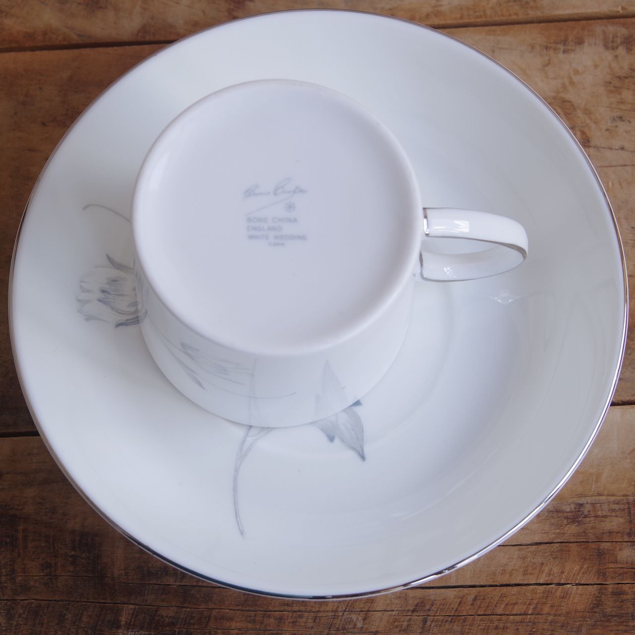 スージークーパー ホワイトウェディング コーヒーカップ ソーサー Susie Cooper ヴィンテージ 食器 #250720-5 アンティーク 陶磁器 レトロ White Wedding マーガレット 花柄 ティーカップ カップ&ソーサー デュオ