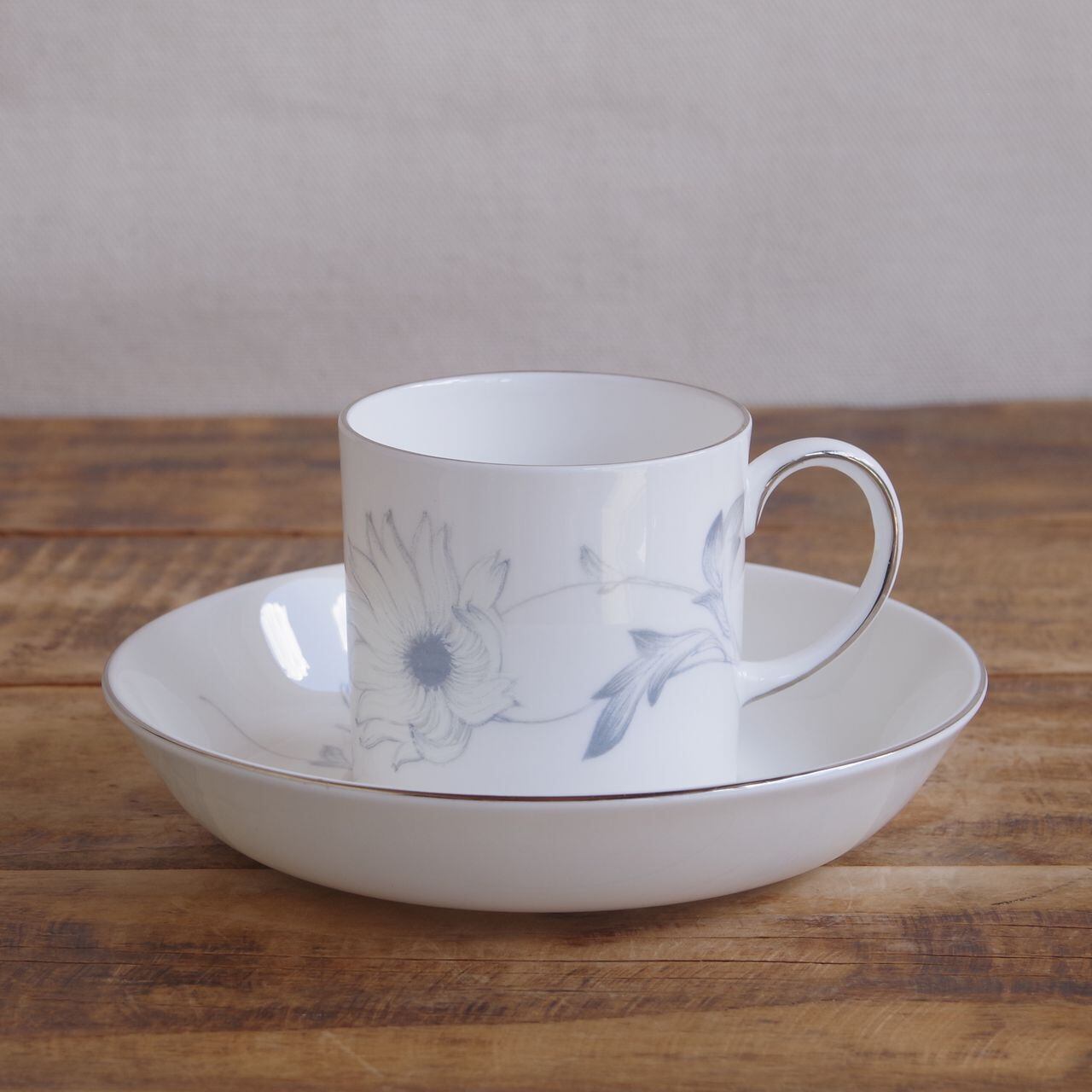 淡いグレーで、マーガレットのような花が可憐に描かれています。