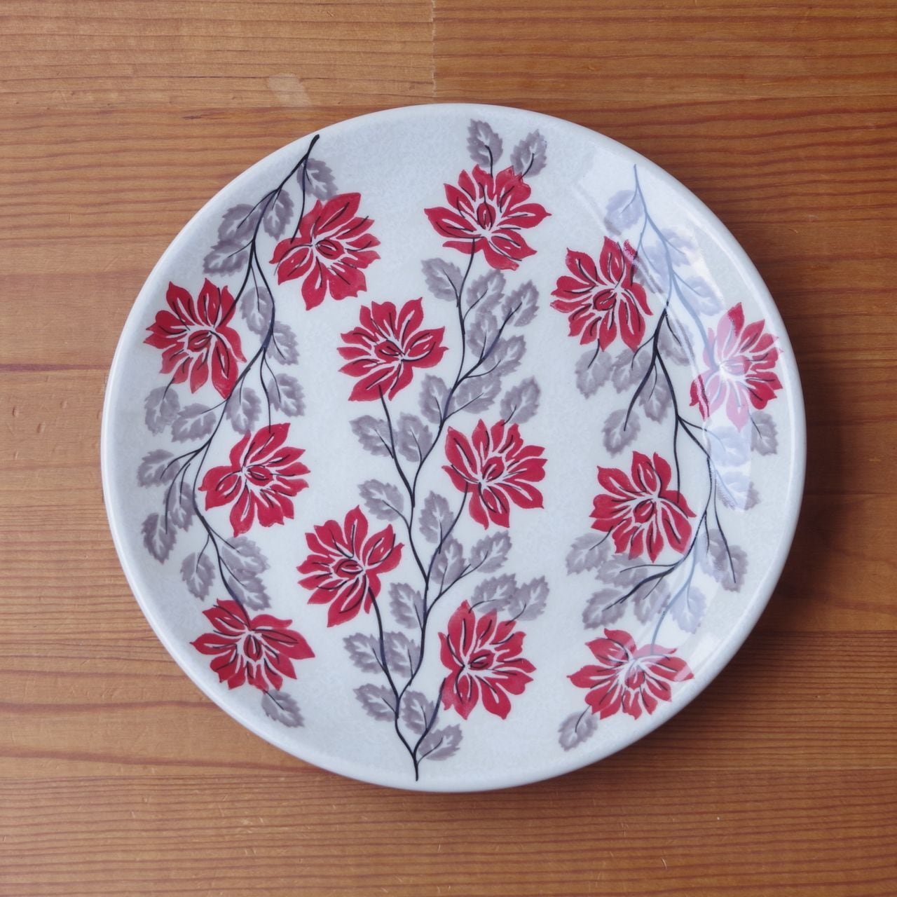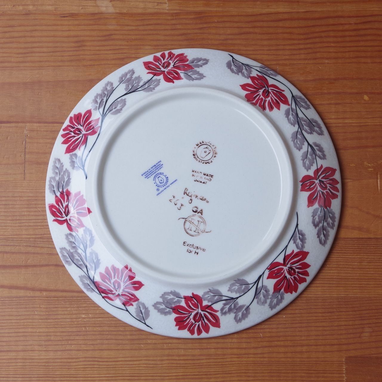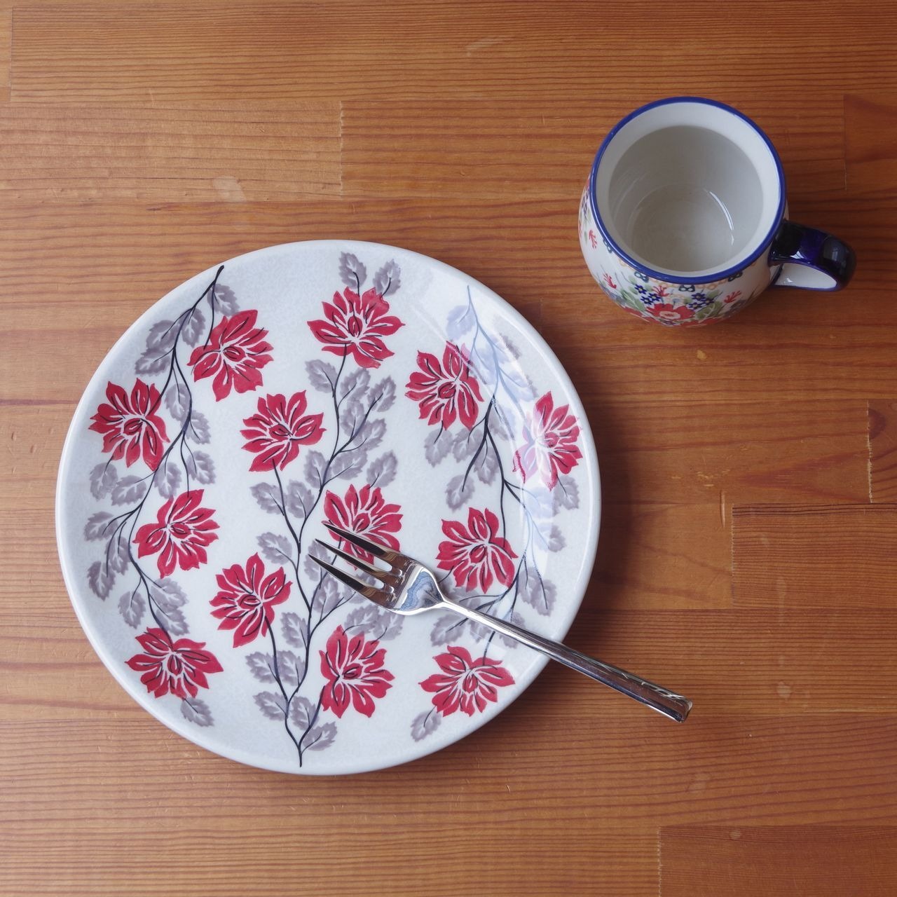 【新品】 ポーランド食器 ポーリッシュポタリー ケーキ皿 ランチプレート 22cm 中皿 T134-KS01 赤 大ぶり 花柄 レース模様 ボレスワヴィエツ 陶器 Boleslawiec
