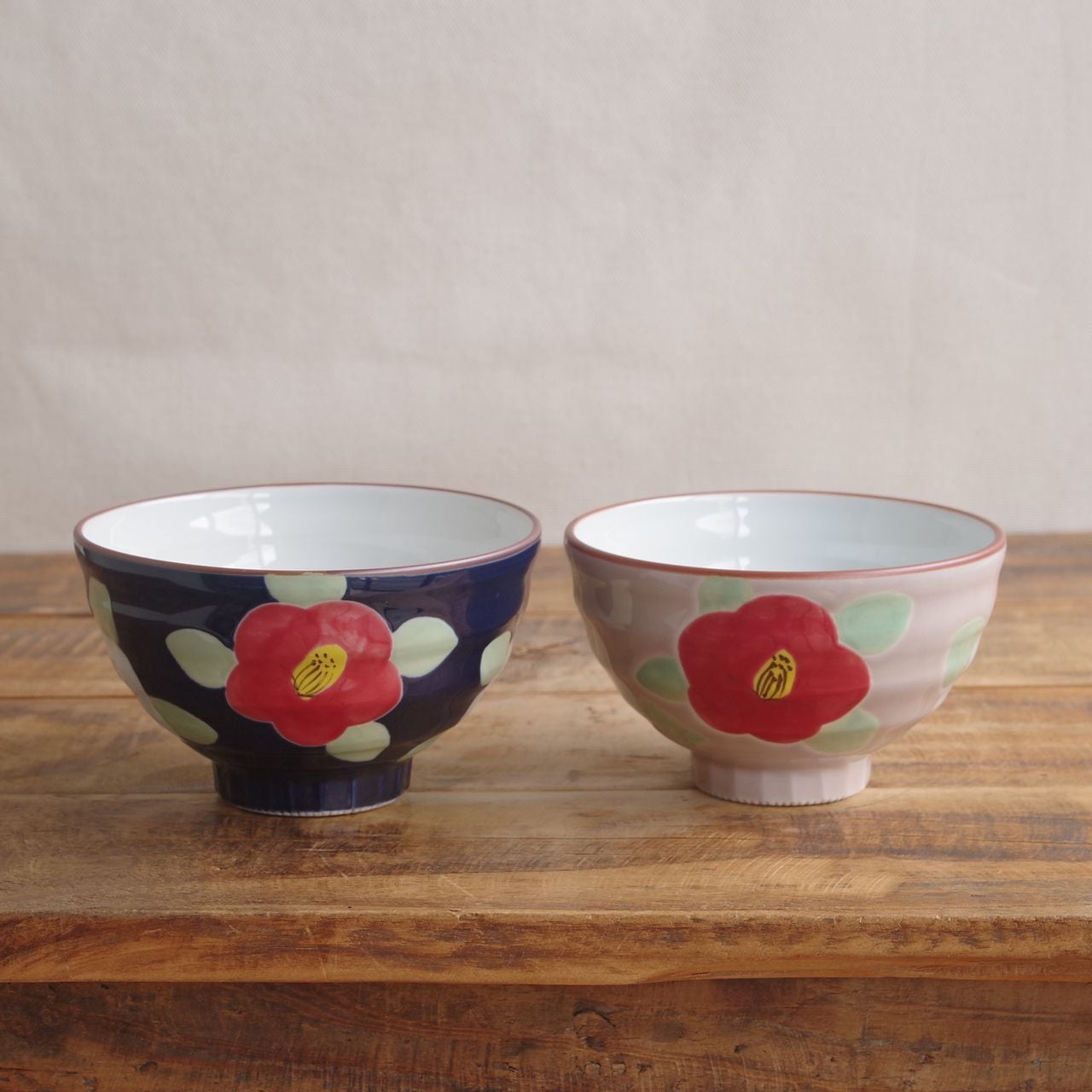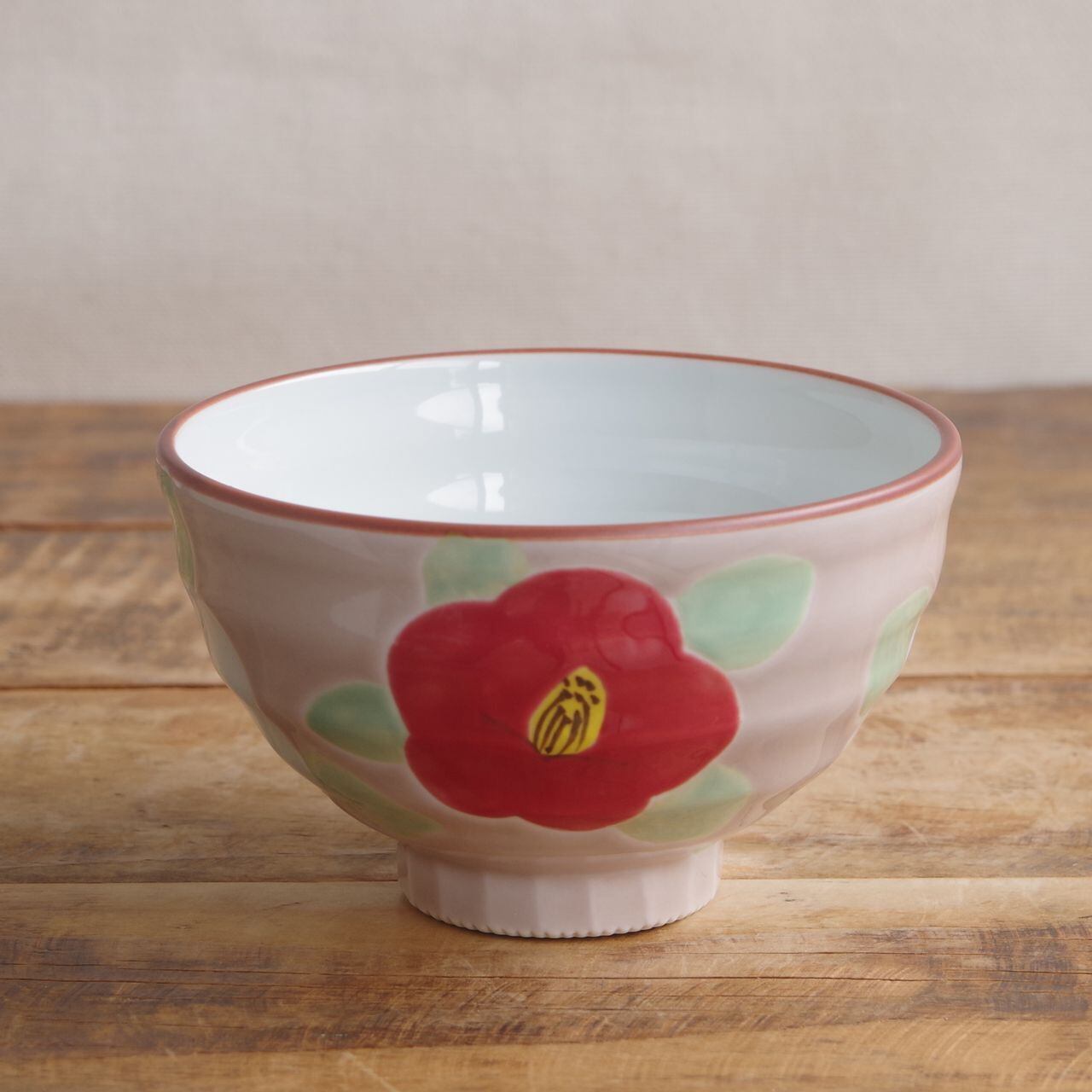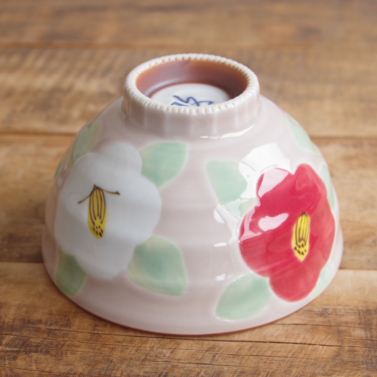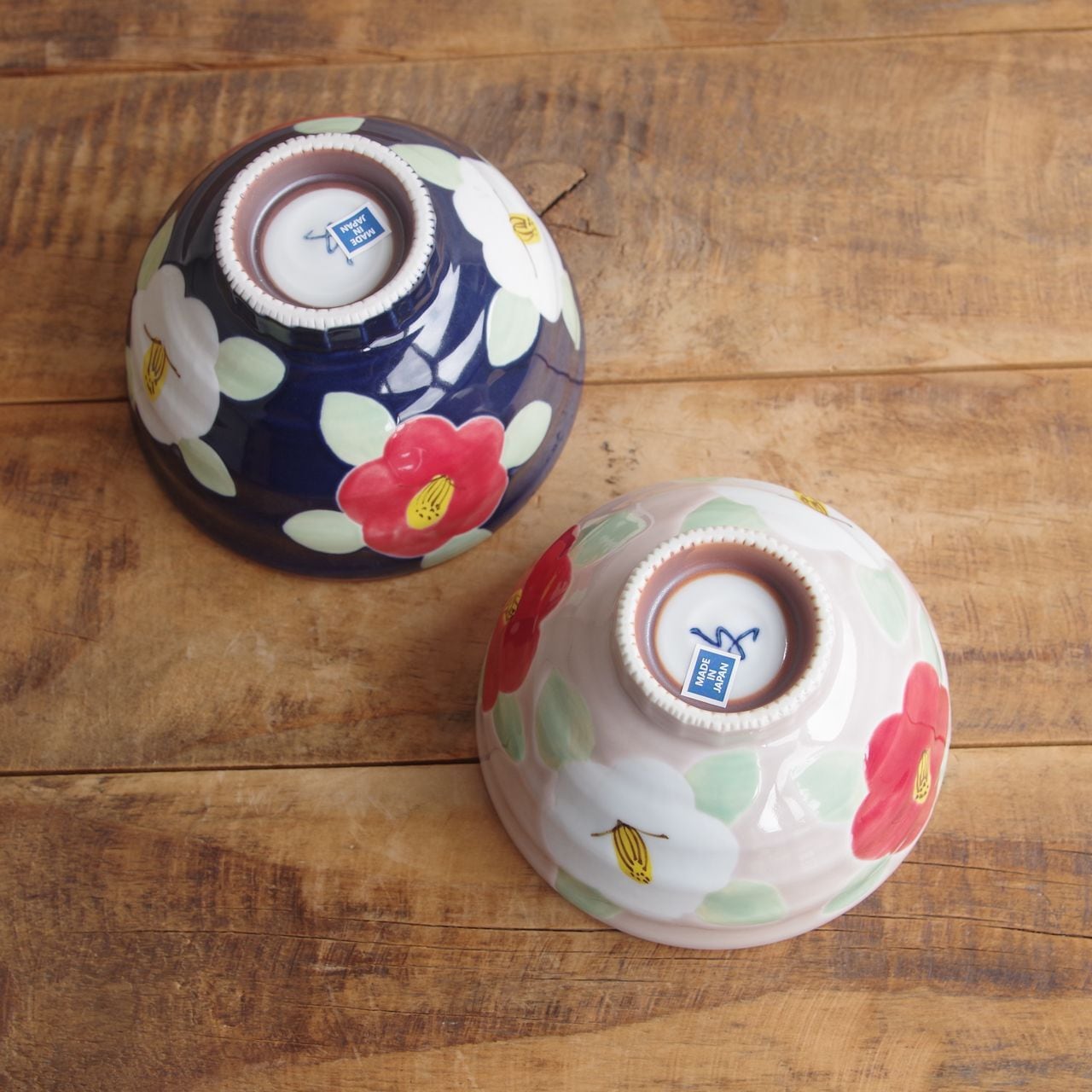 【新品】 波佐見焼 手描釉彩椿 飯碗 ご飯茶碗 大 小 2サイズ 花柄 昭和レトロ 和食器 日本製 ピンクベージュ 瑠璃 ボウル ちゃわん