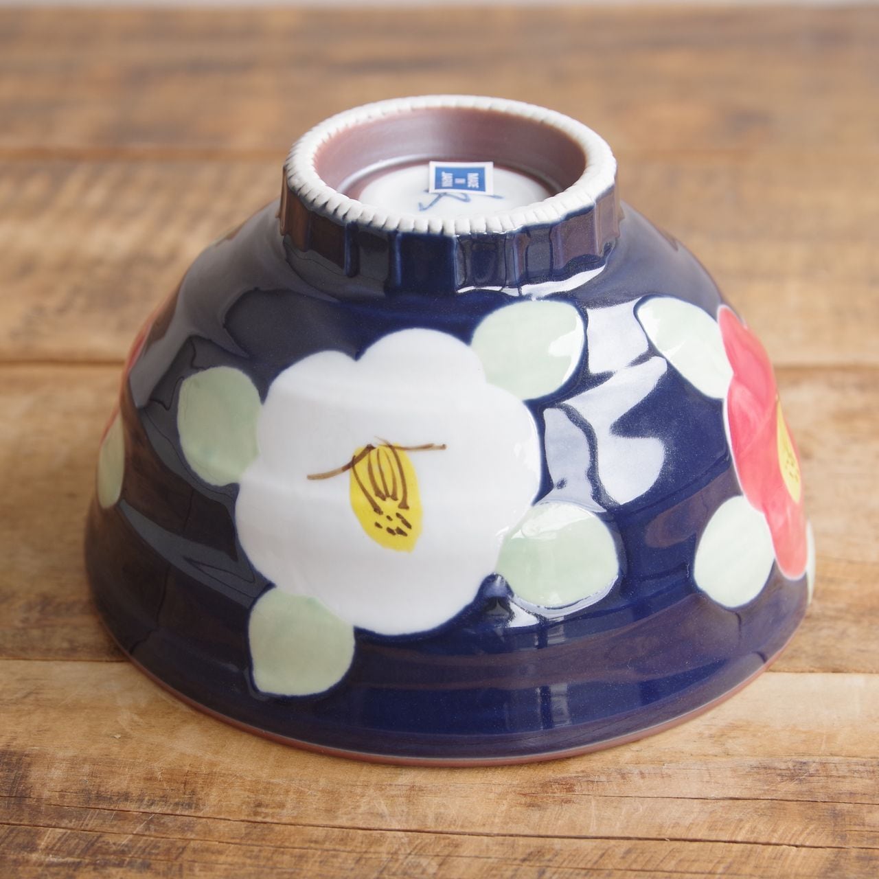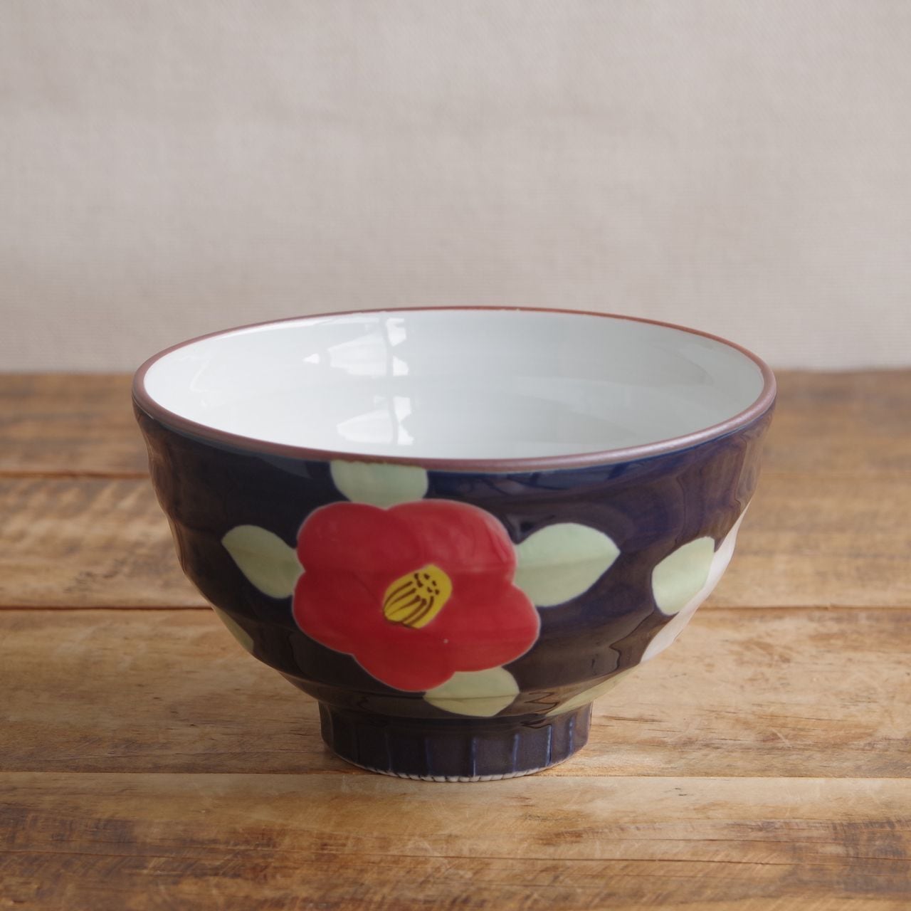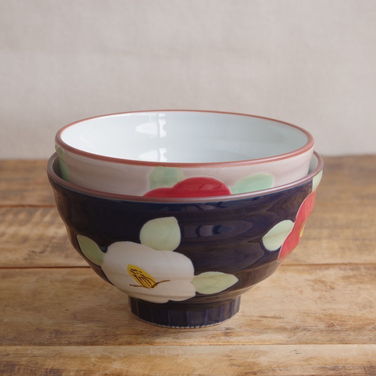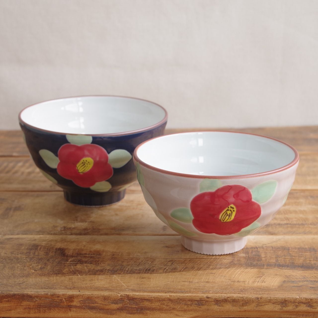 【新品】 波佐見焼 手描釉彩椿 飯碗 ご飯茶碗 大 小 2サイズ 花柄 昭和レトロ 和食器 日本製 ピンクベージュ 瑠璃 ボウル ちゃわん
