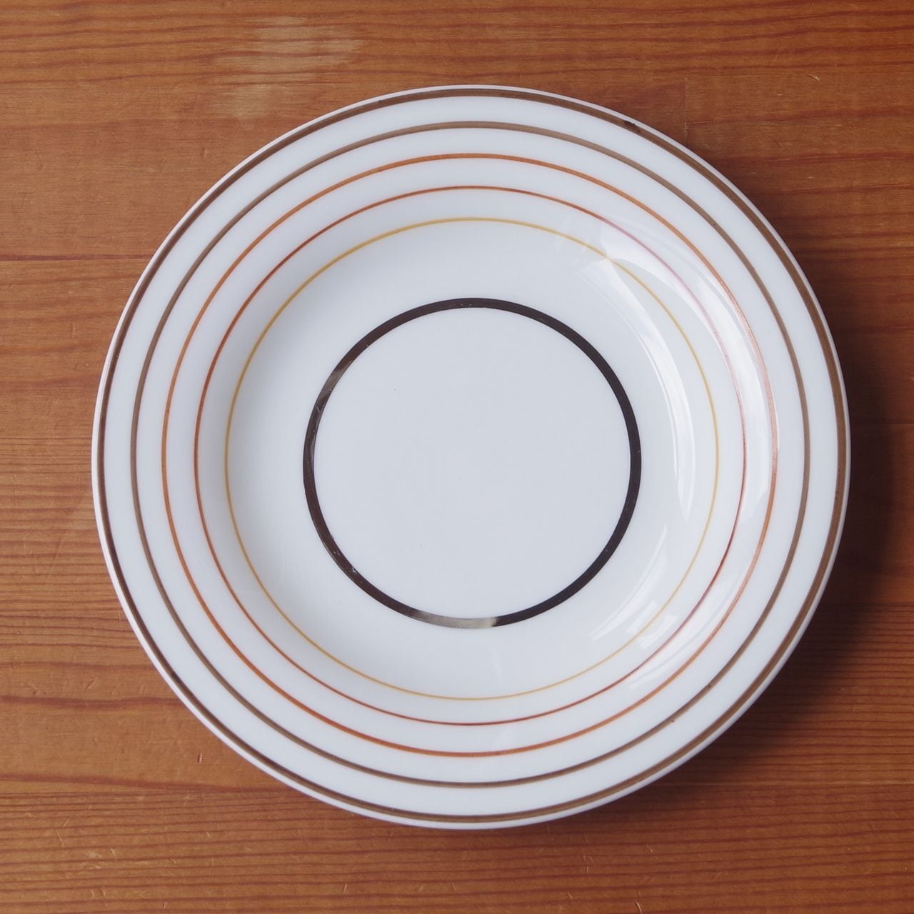 イエロー、赤、オレンジ、ブラウンのラインが同心円状に入っています。