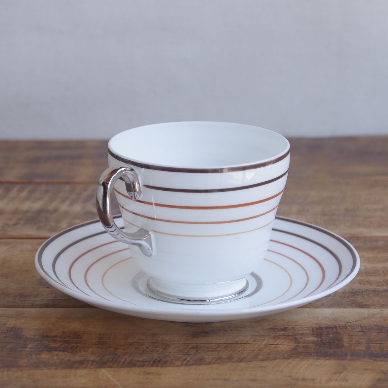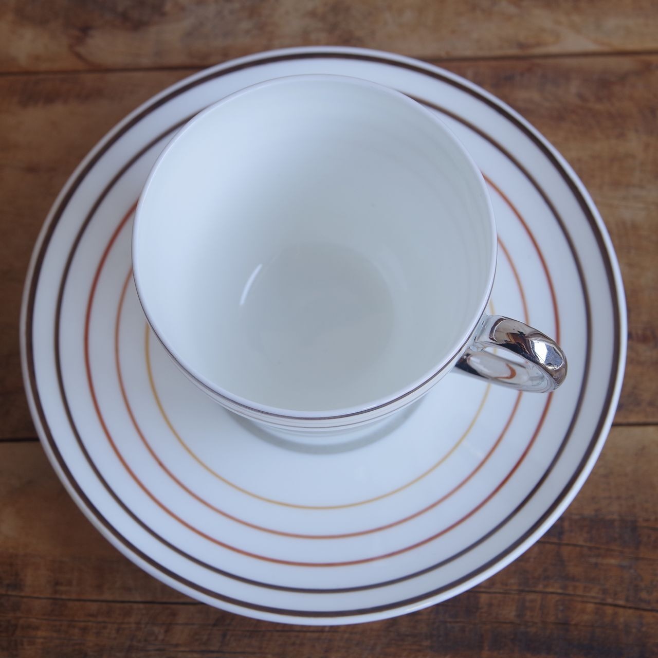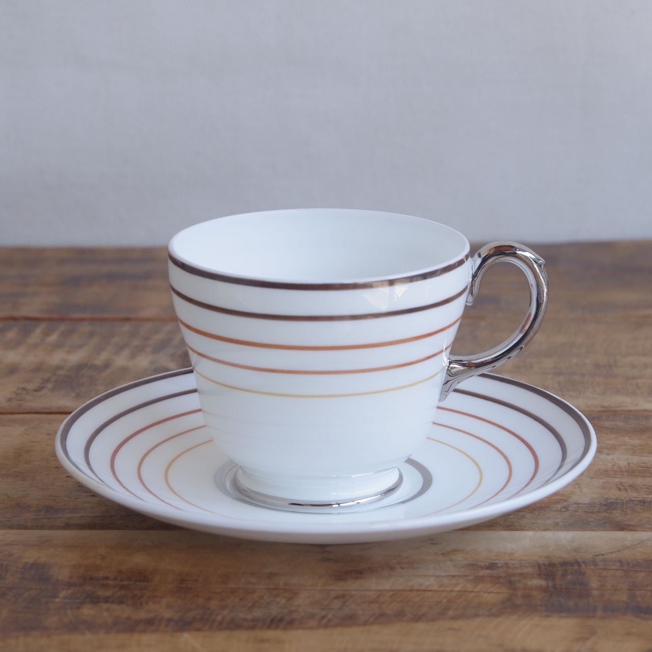 ウェッジウッド プラチナ ブラウン ボーダー グラデーション コーヒーカップ&ソーサー Wedgwood ヴィンテージ 食器 #250802-3 アンティーク 陶磁器 レトロ シルバー イエロー 赤 ティーカップ シンプルモダン